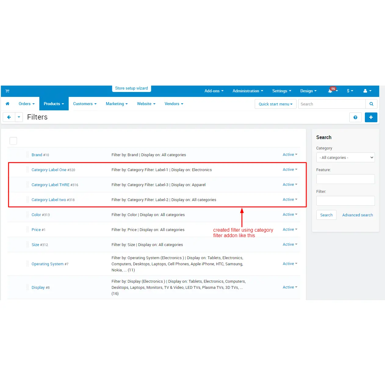 - Save the filter, and your store will now display products filtered by the selected category level.