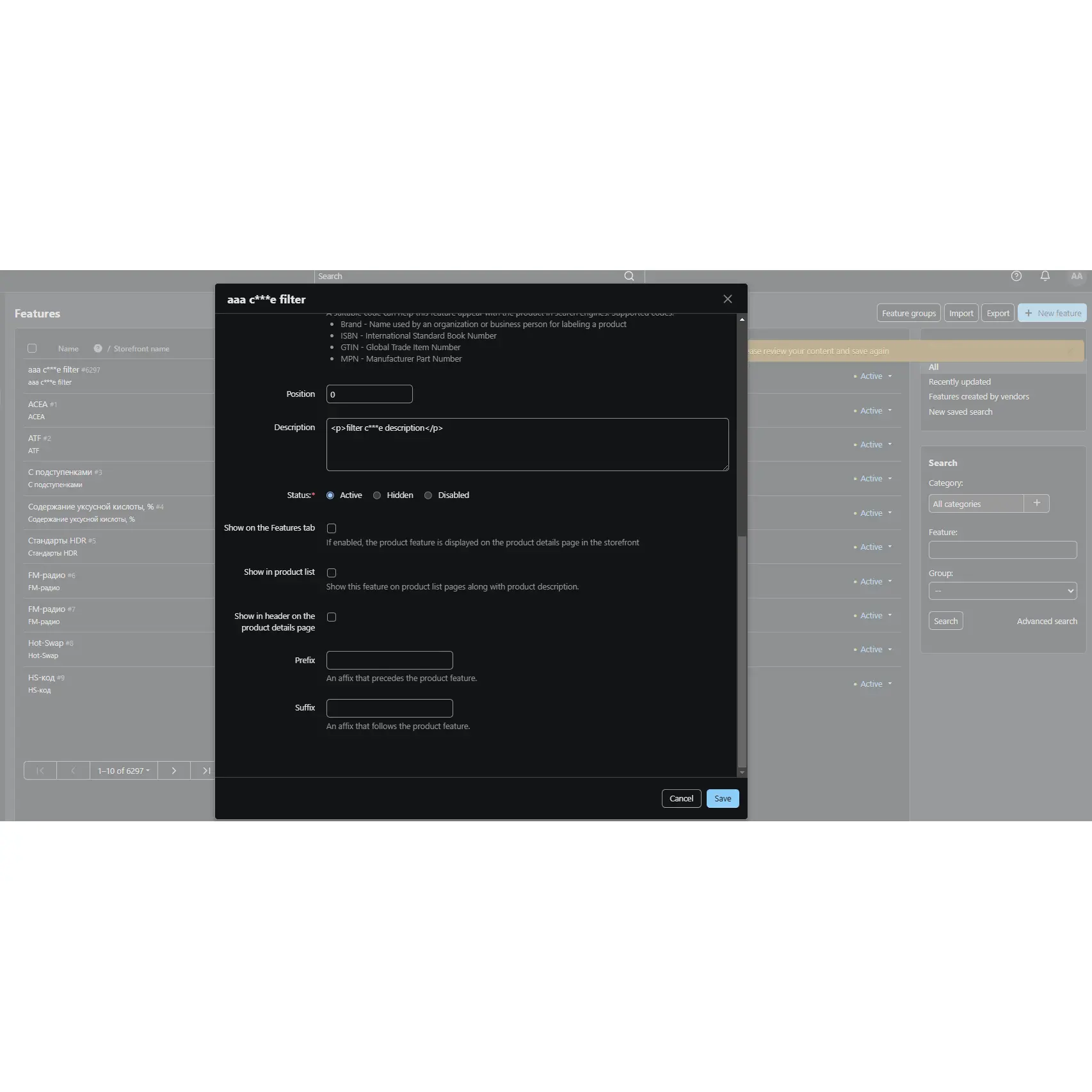 CS-Cart Word’s Blocker