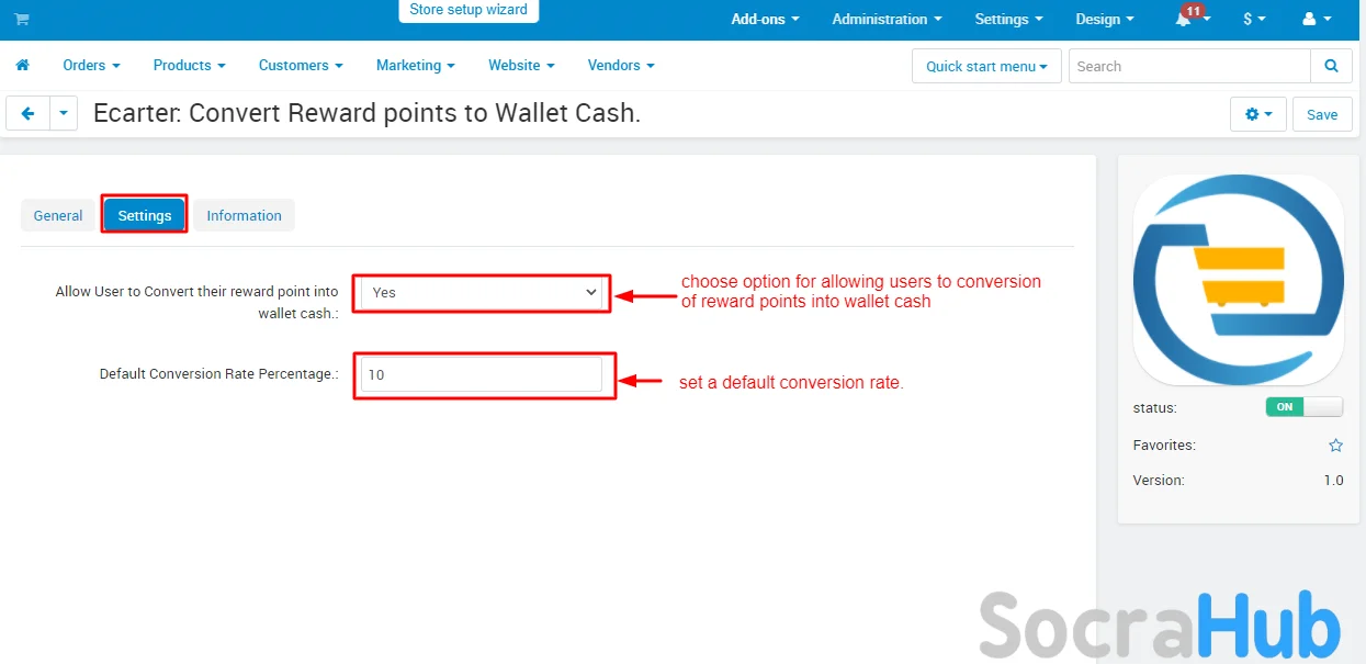 This add-on is dependent on two more add-ons that are CS-Cart Reward Points and Ecarter: CS-Cart Wallet Add-on.