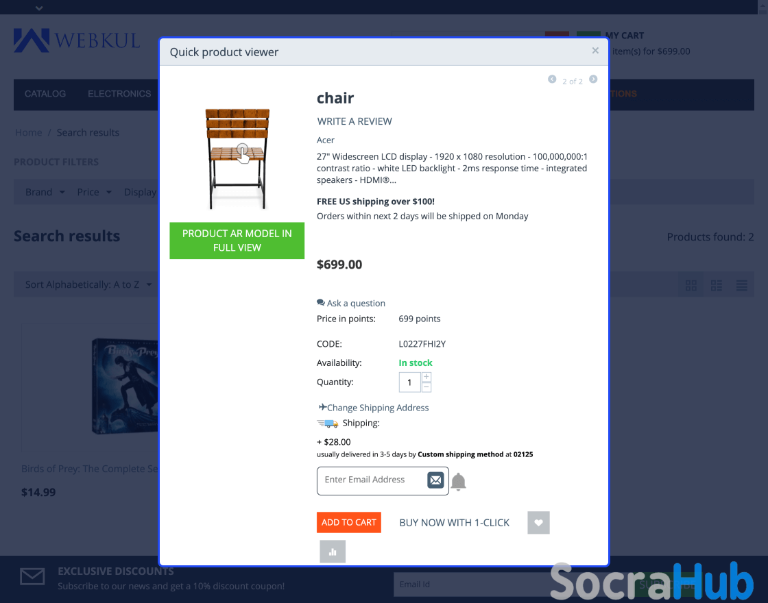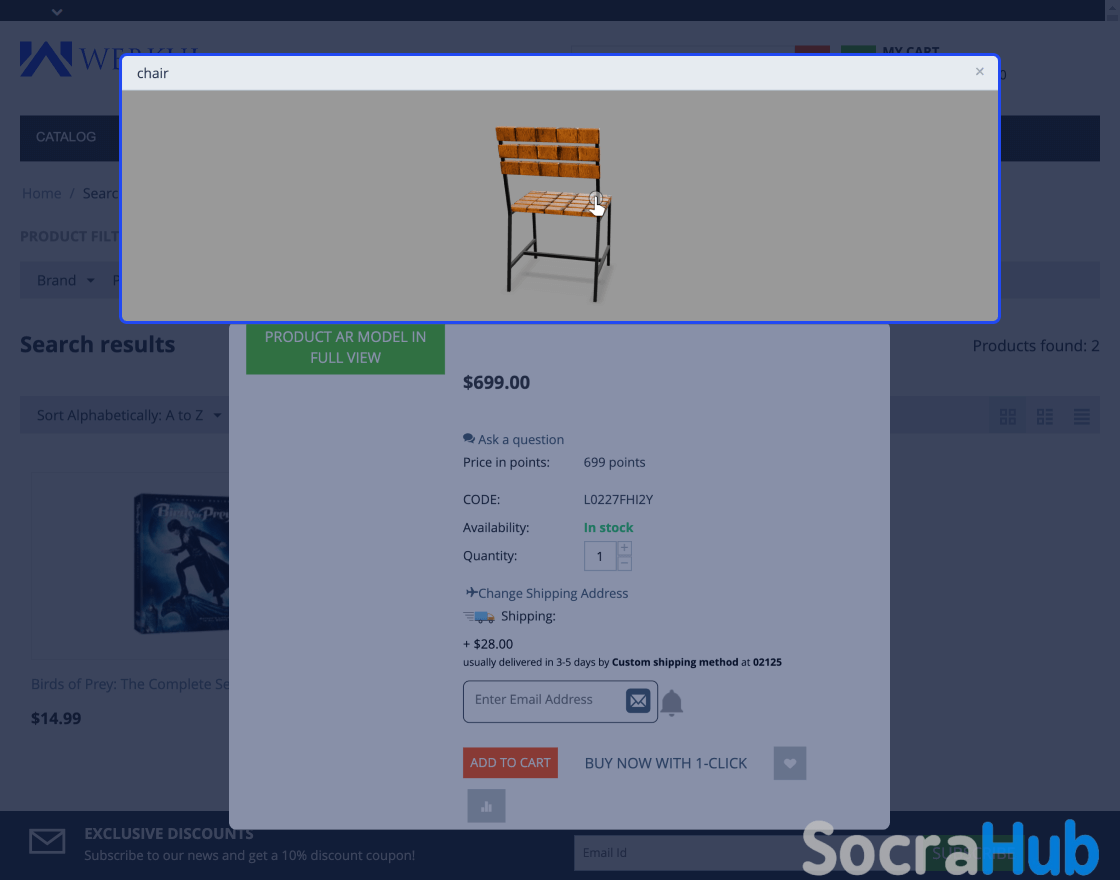 The CS-Cart 3D viewer with Augmented Reality allows customers to see products in 3D format. It gives them a realistic view of the product that feels like the product is right in front of them.