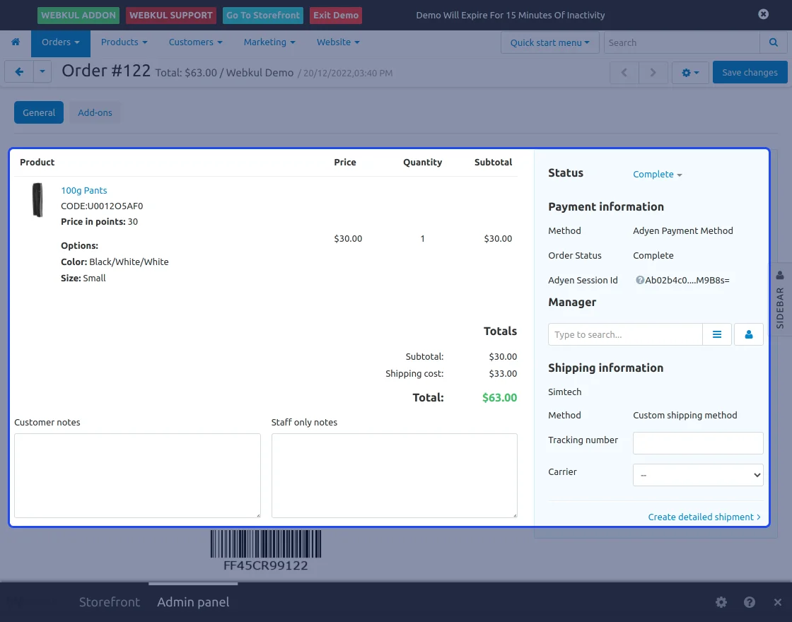 - The Admin can check the completed payment from the Adyen payment gateway.