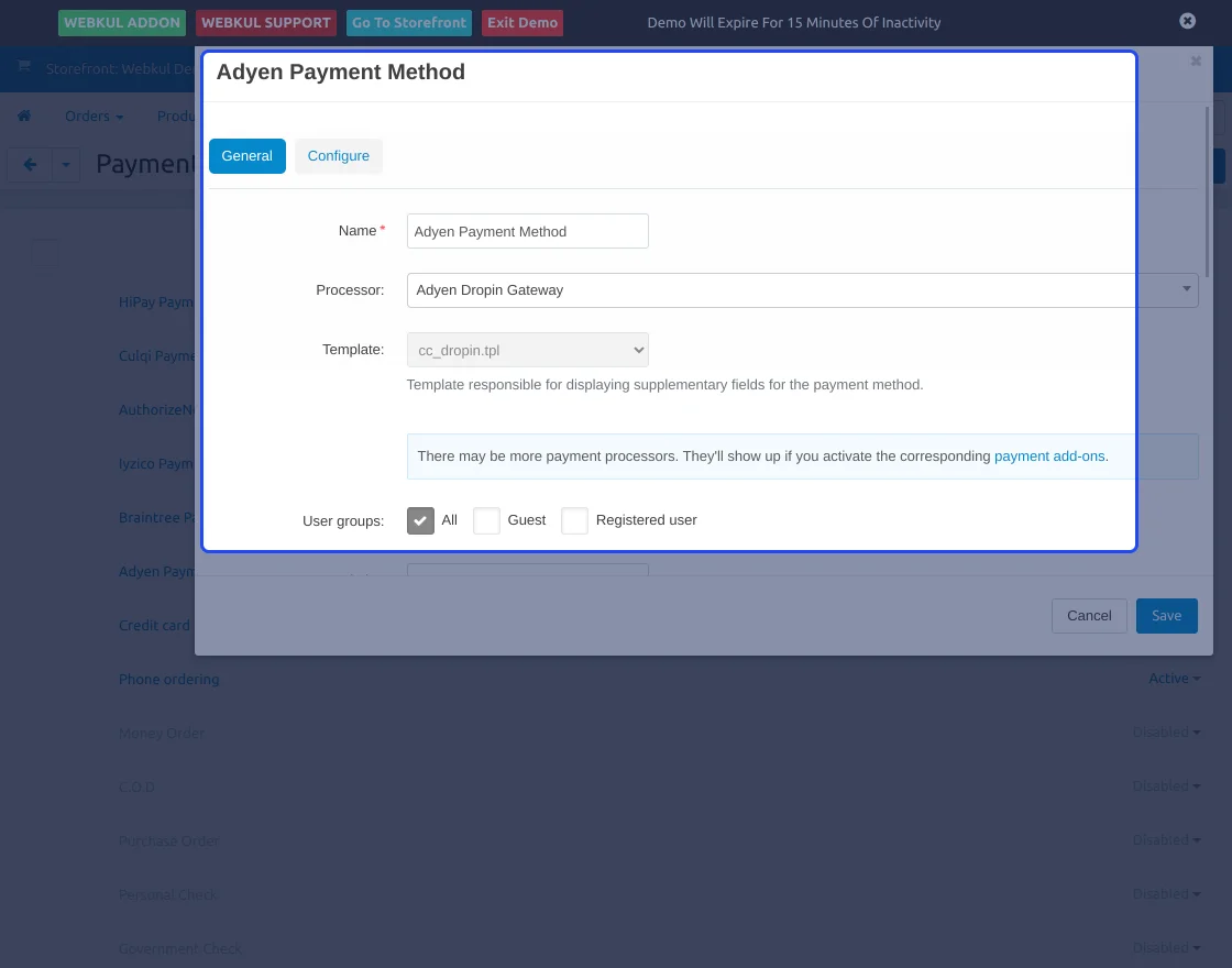 CS-Cart Adyen Payment Gateway: Adyen is a popular globalized payment gateway. This enables merchants to accept payments from anywhere in the world and provides a global payment solution for mid, large, and enterprise e-commerce merchants. With this add-on store Admin can easily provide the payment method" Adyen" to their customers for safe and secure payment.