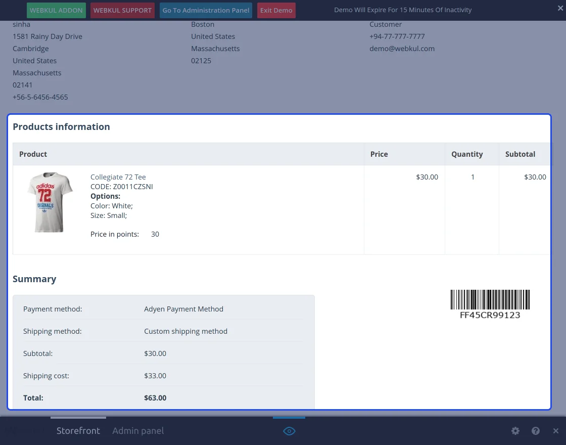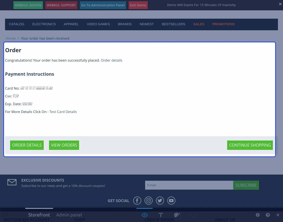 - Once the customer makes the payment Adyen will confirm the payment status which will show in the background.