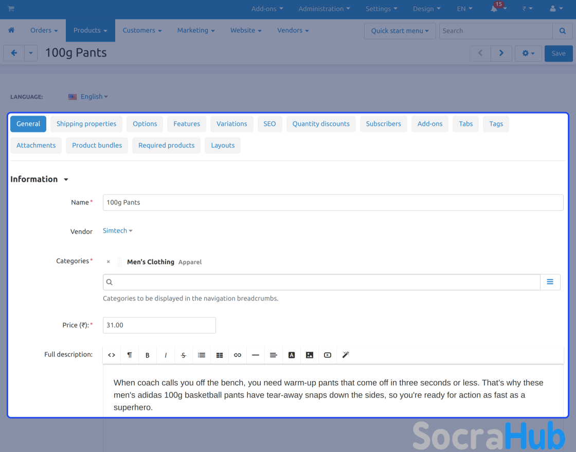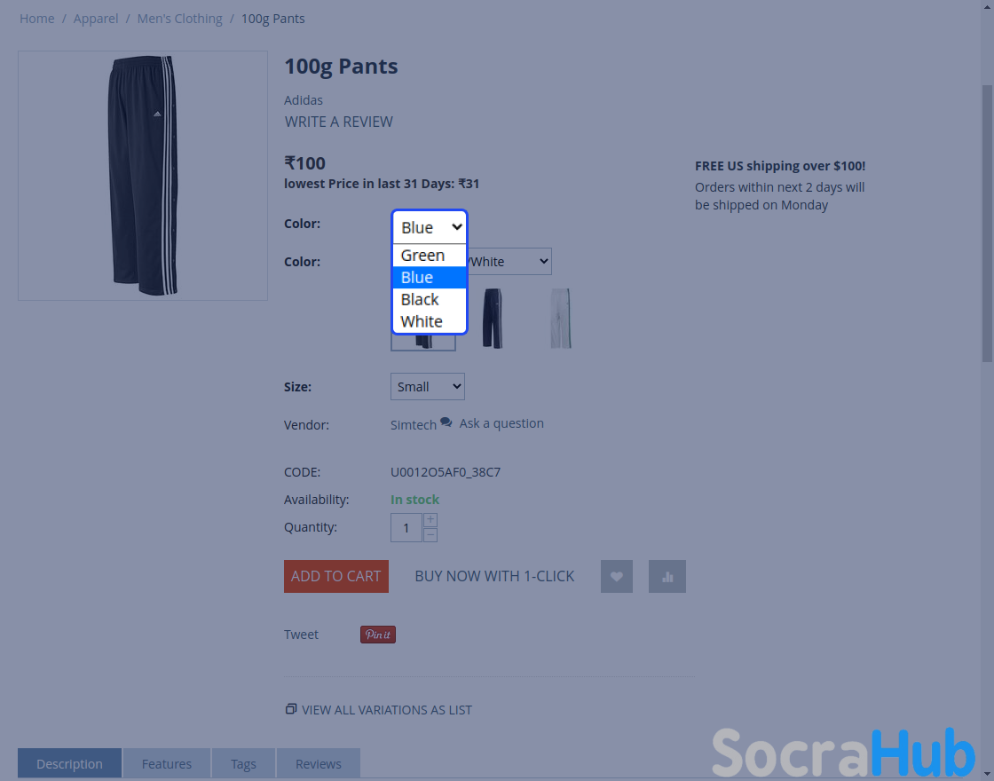CS-Cart EU Price Indication Directive supports variant products, the Admin can set prices for every individual variant type for any product.