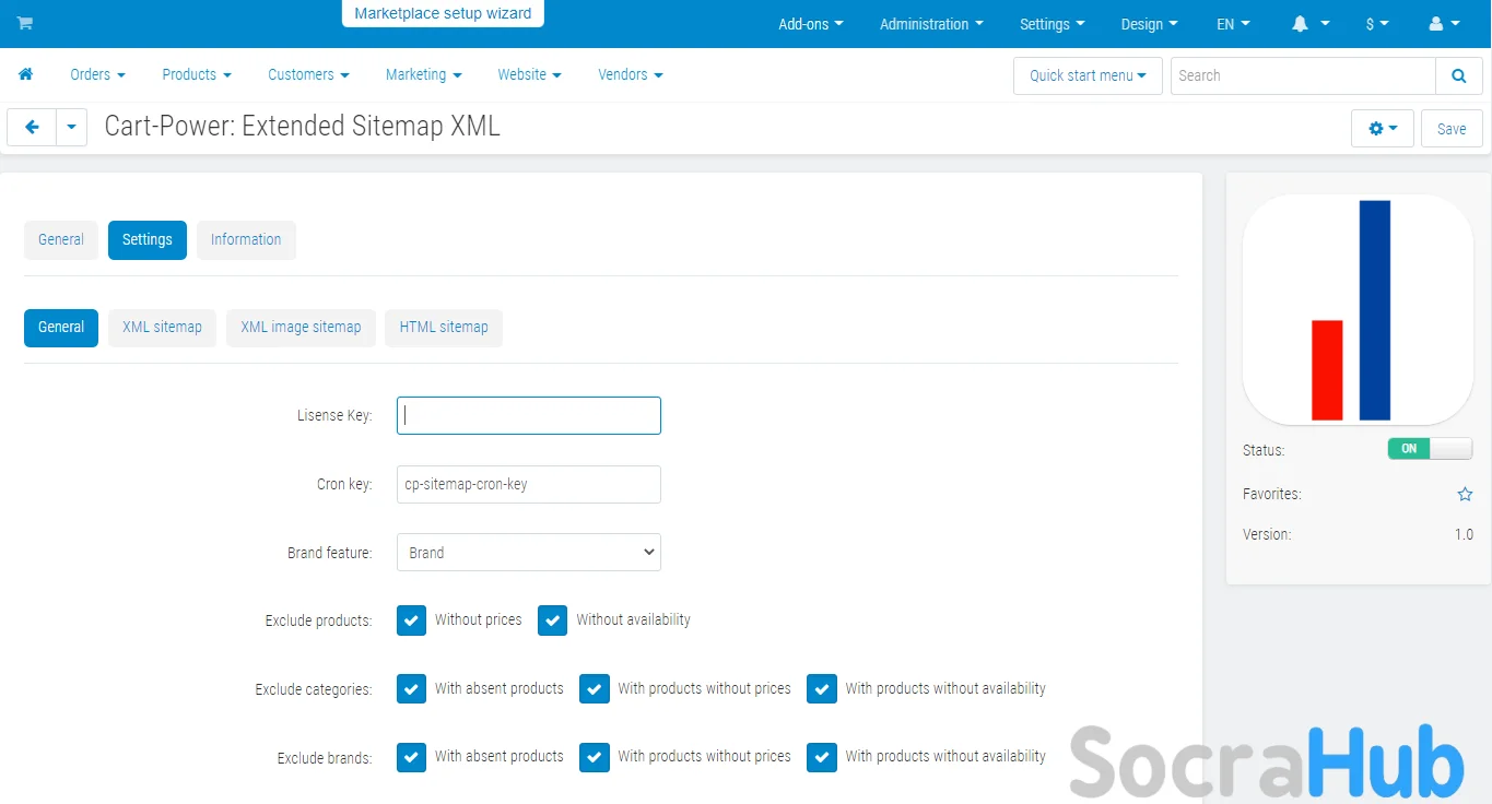This add-on allows you to generate an extended XML sitemap that meets all the requirements of the search engines. Exclude links to out of stock products and products without prices, empty categories and brands without products from the sitemap. Add additional custom links and a separate XML image sitemap.
