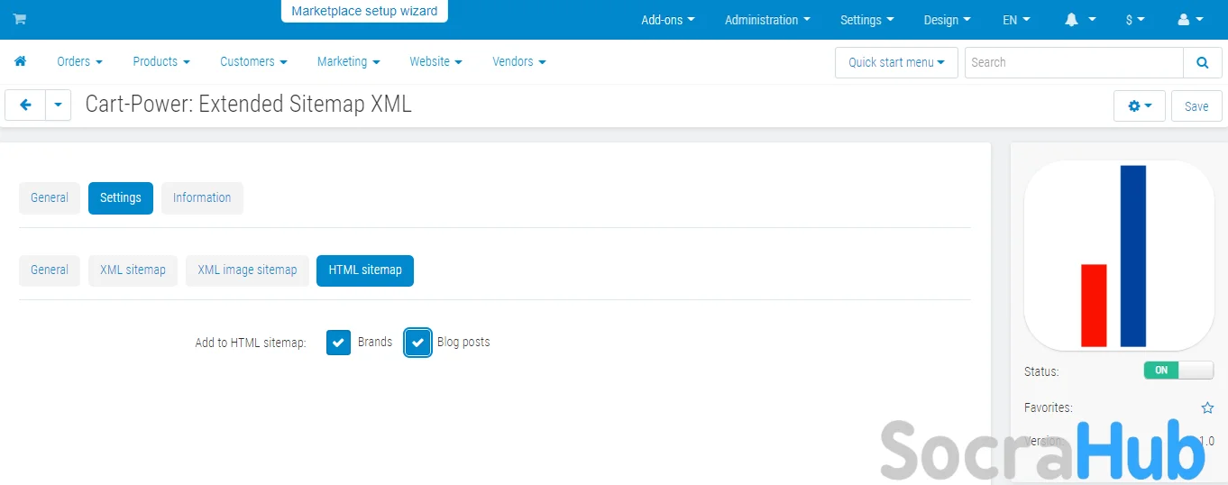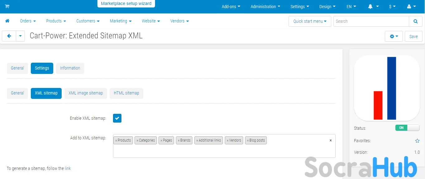 Thanks to the add-on , you can flexibly manage the inclusion of products, category pages, brands, and additional links in an extended XML sitemap. Generate advanced XML map, XML image map and advanced HTML sitemap on schedule.