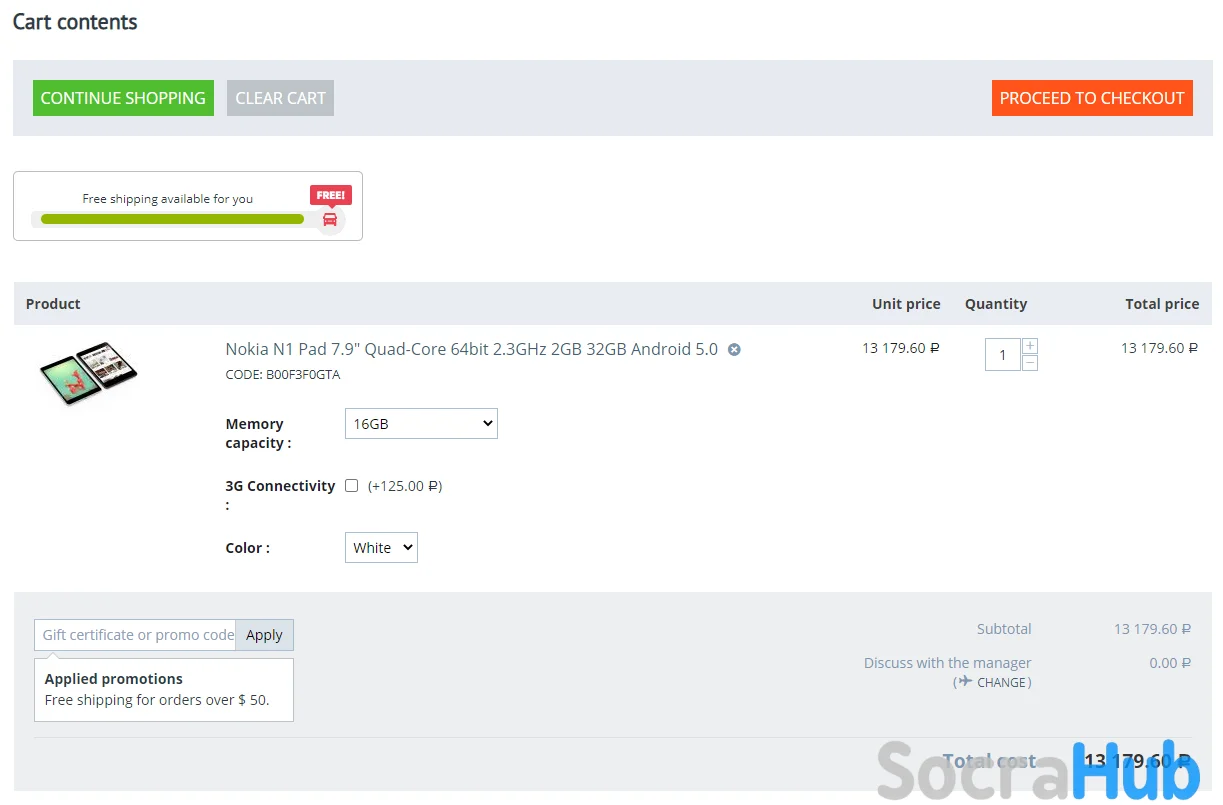 • The ability to display a notification about the total cost of goods in the cart required for free shipping.