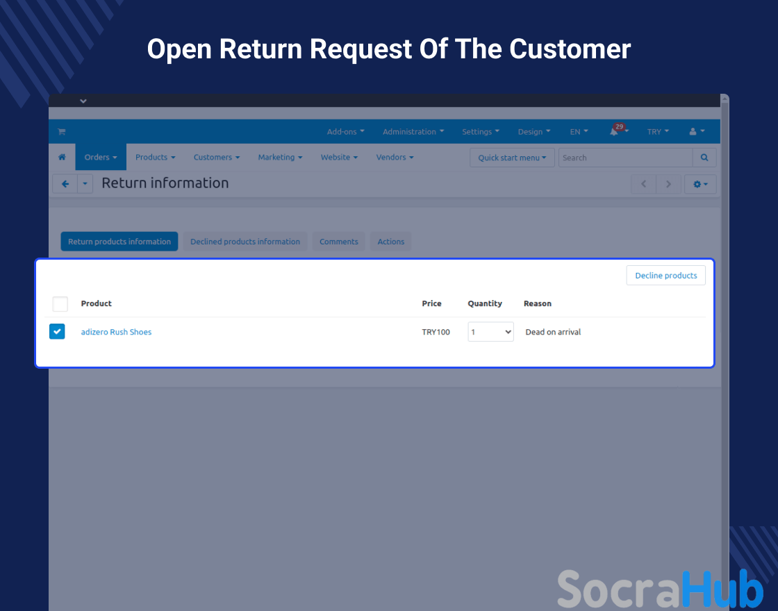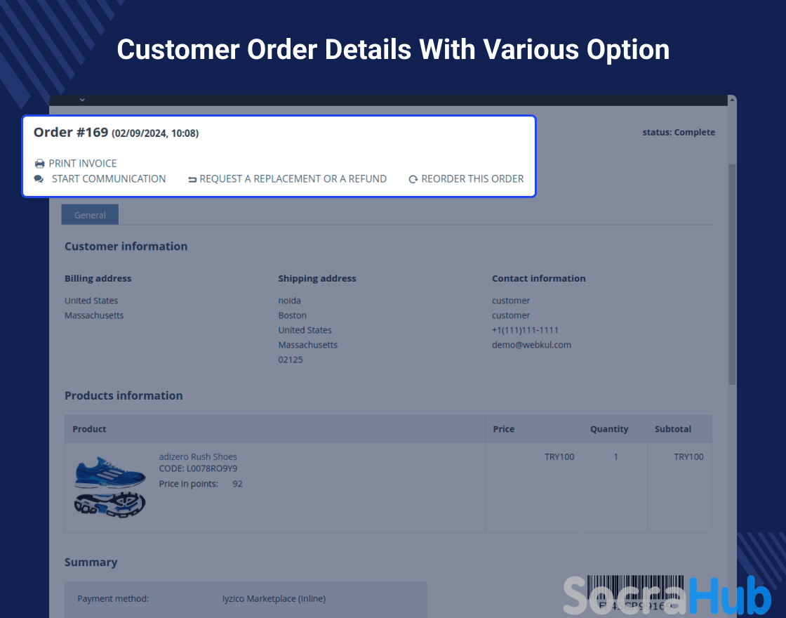 • Once the customer places the refund request Admin can approve or disapprove the request.