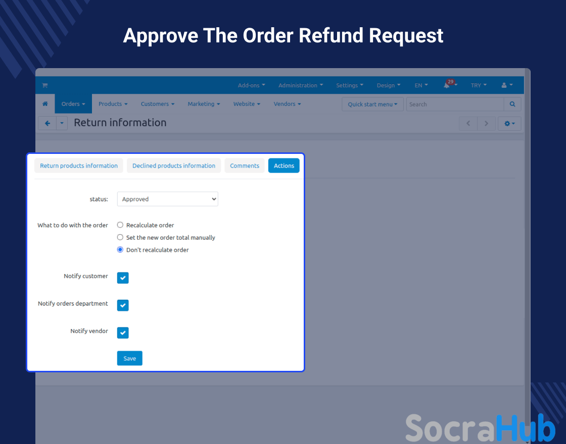 • If enabled by the Admin, the seller will receive an email message when the refund is approved.