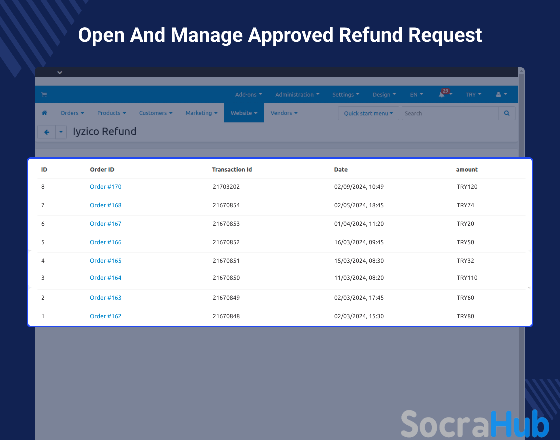 • Using the iyzico payment gateway, the Admin can approve or disapprove transactions.