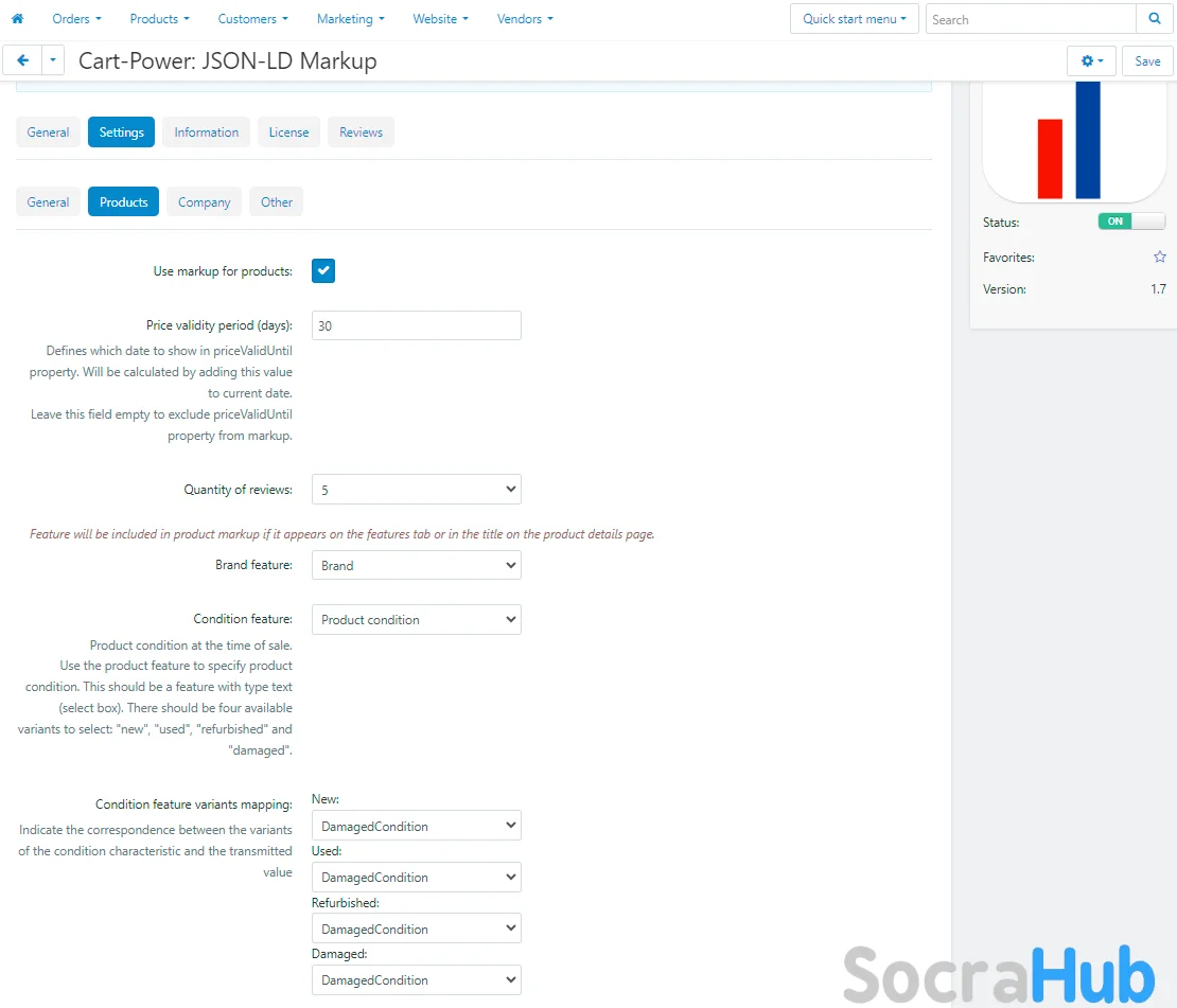 The JSON-LD Markup add-on automatically marks up data on the pages of your store to generate structured data for search engines.