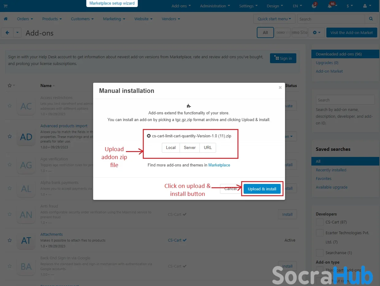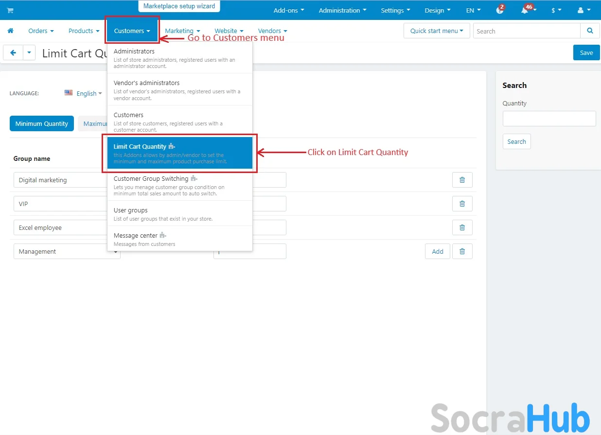 - CS Cart’s Limit Cart Quantity addon allows administrator to create and manage specific purchasing conditions for different user groups.