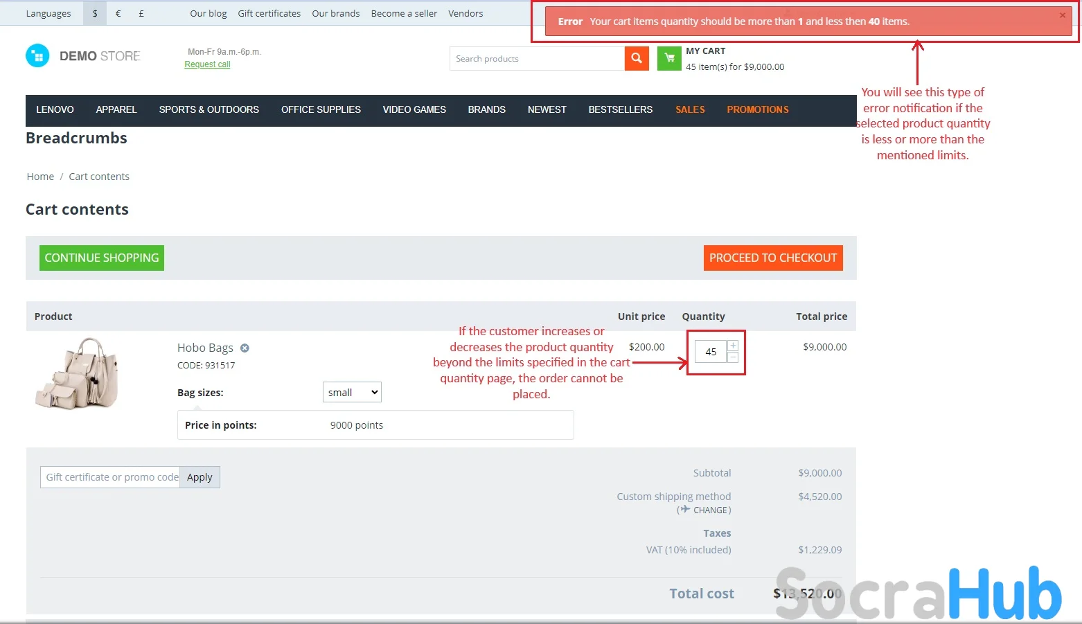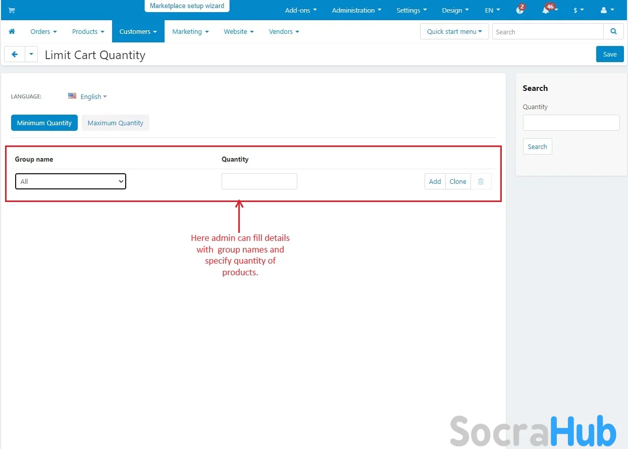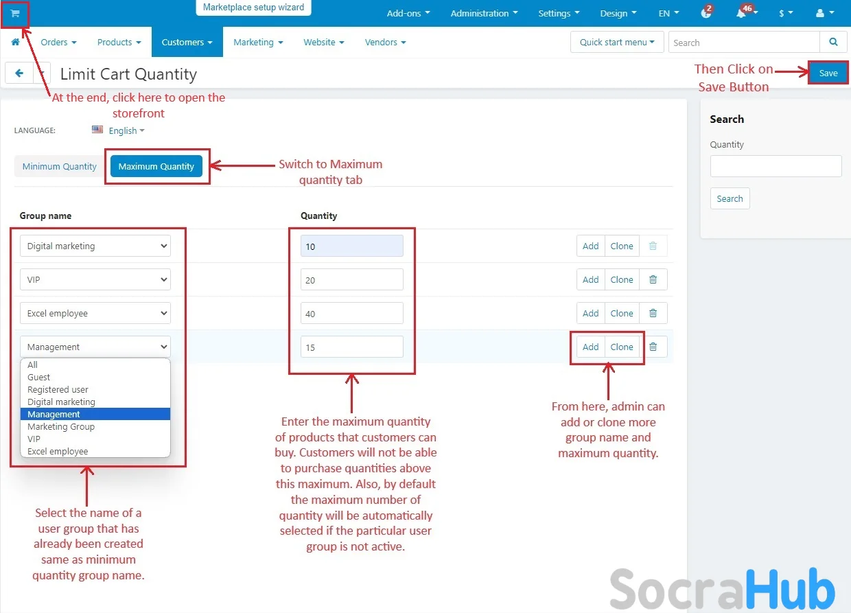 - Admin can decide the maximum number of items customers can buy for each group. This stops customers from buying more than a certain number of products.