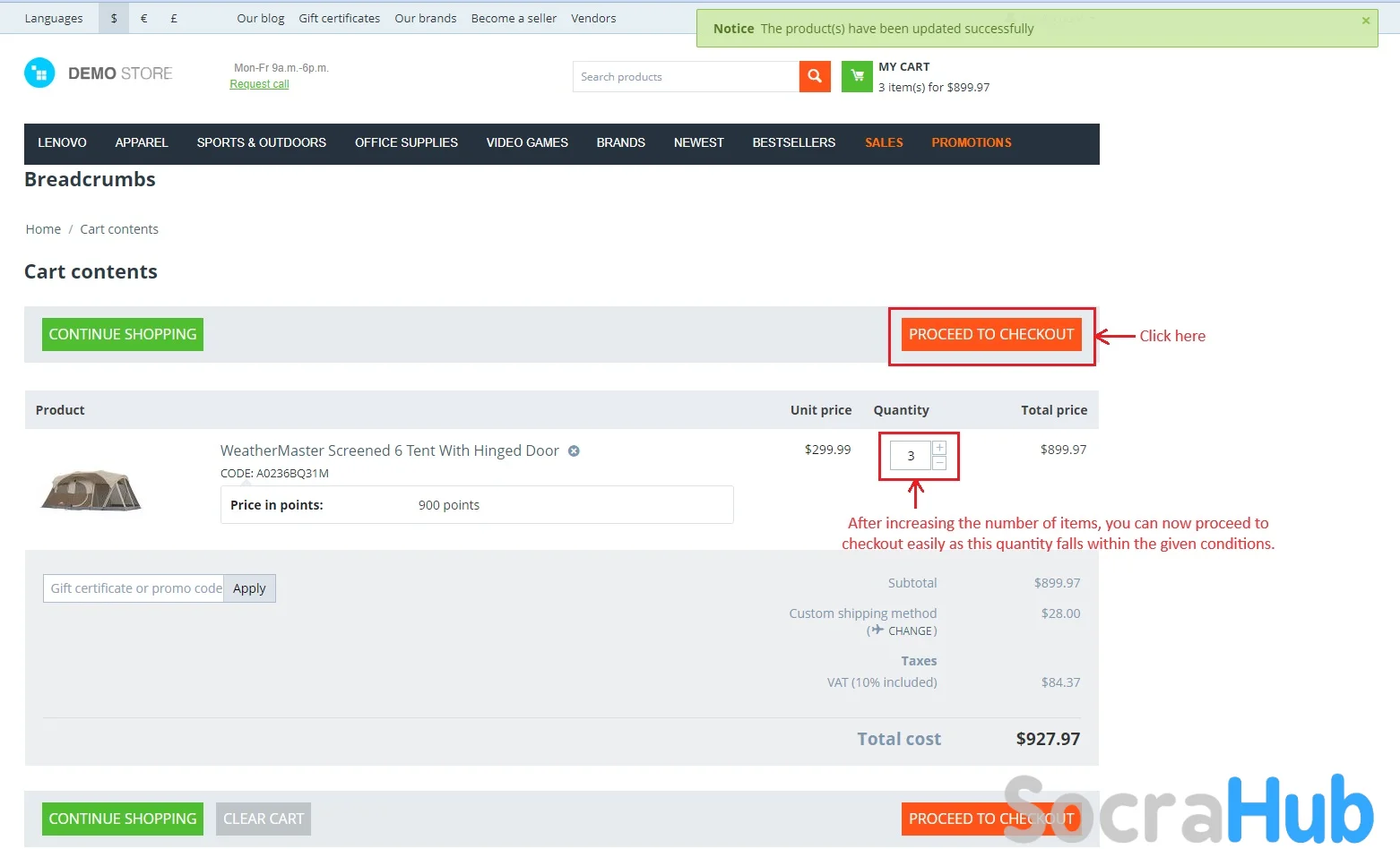 - Admin can decide the minimum number of items customers must buy for each groups. This makes sure customers buy at least a certain amount of products.
