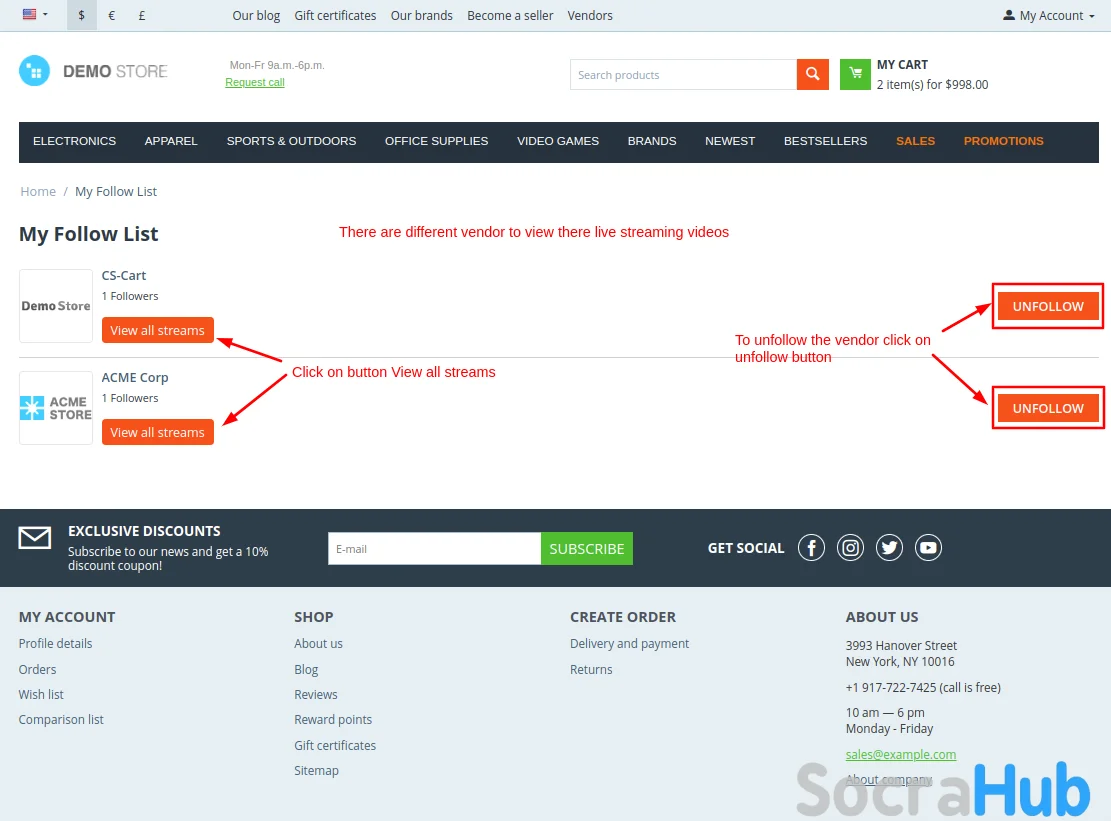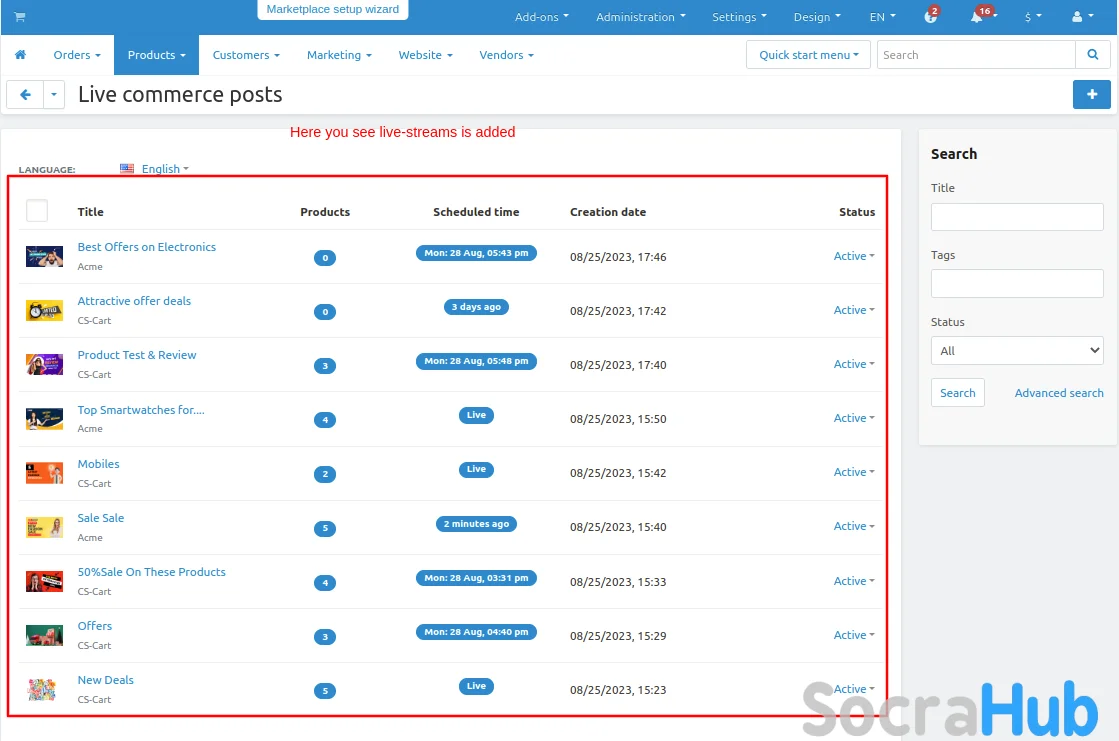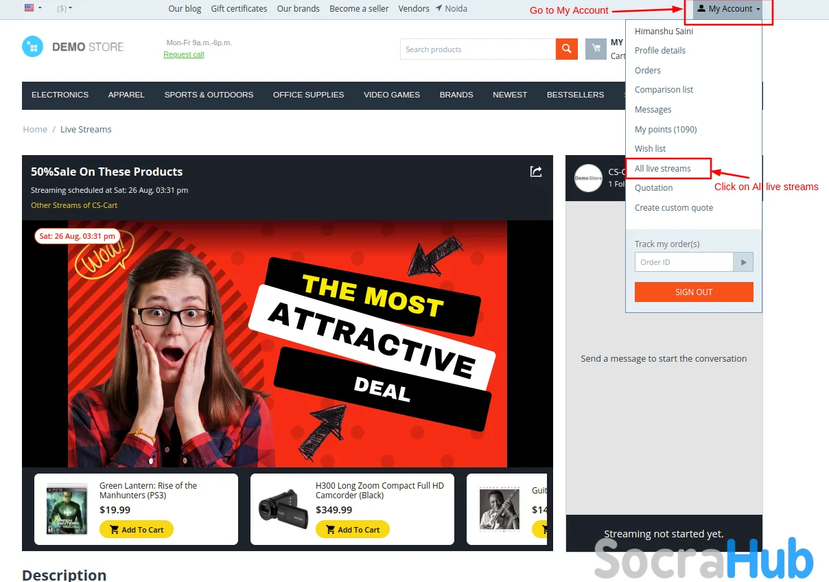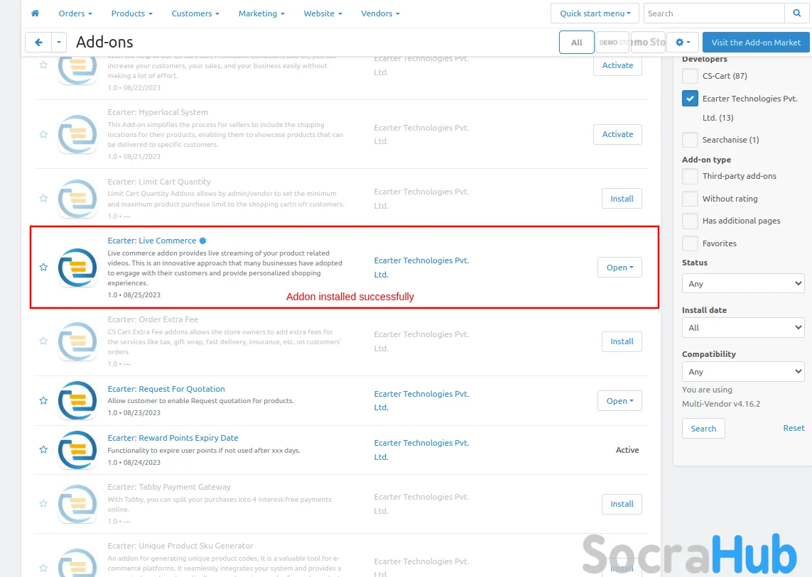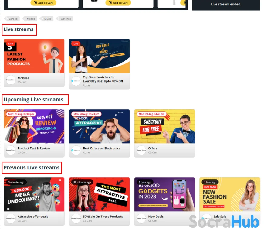 - Live commerce addon supports both CS-Cart Multivendor and CS-Cart Ultimate.
