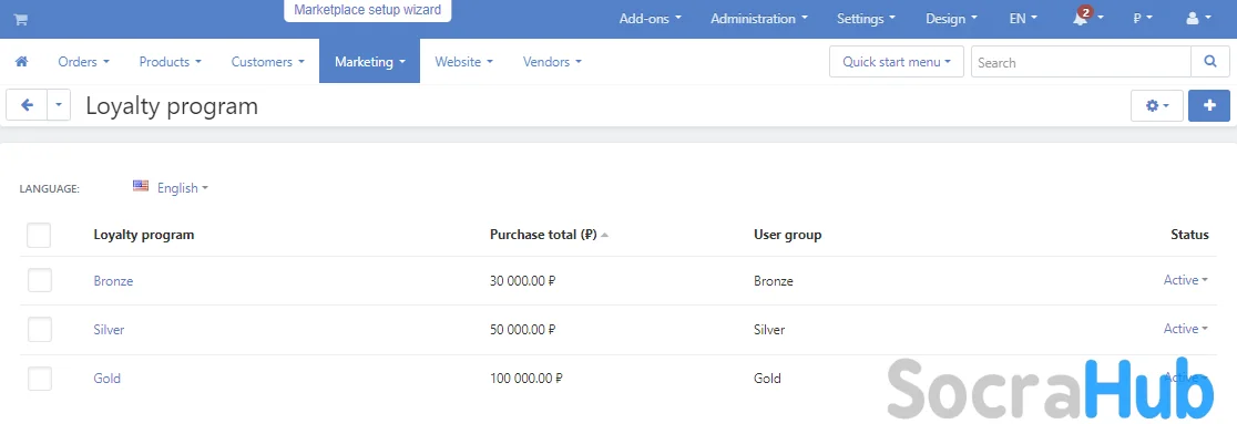 With the Loyalty Program add-on, you are able to build a flexible loyalty system based on user groups and reward customers with various bonuses (for example, discounts). The more users will buy the bigger discount they will have.
