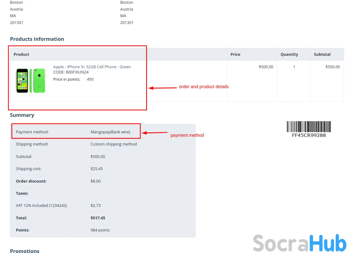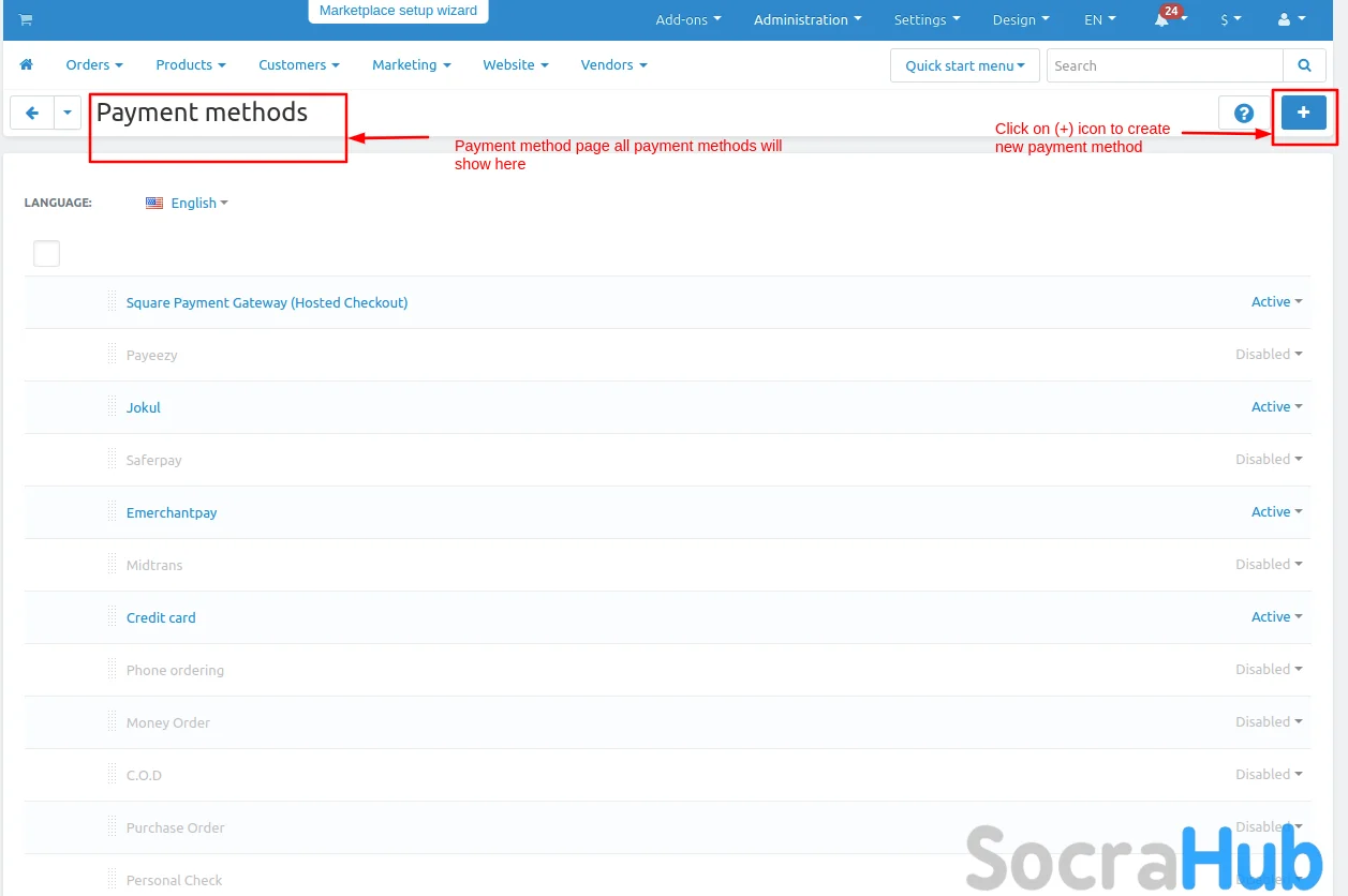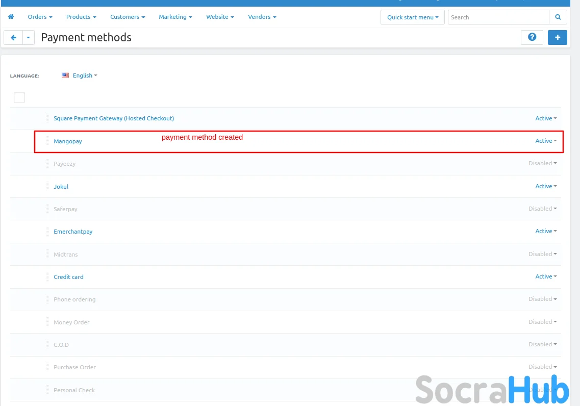 - The Admin can enable/ disable the payment method from the Admin panel.