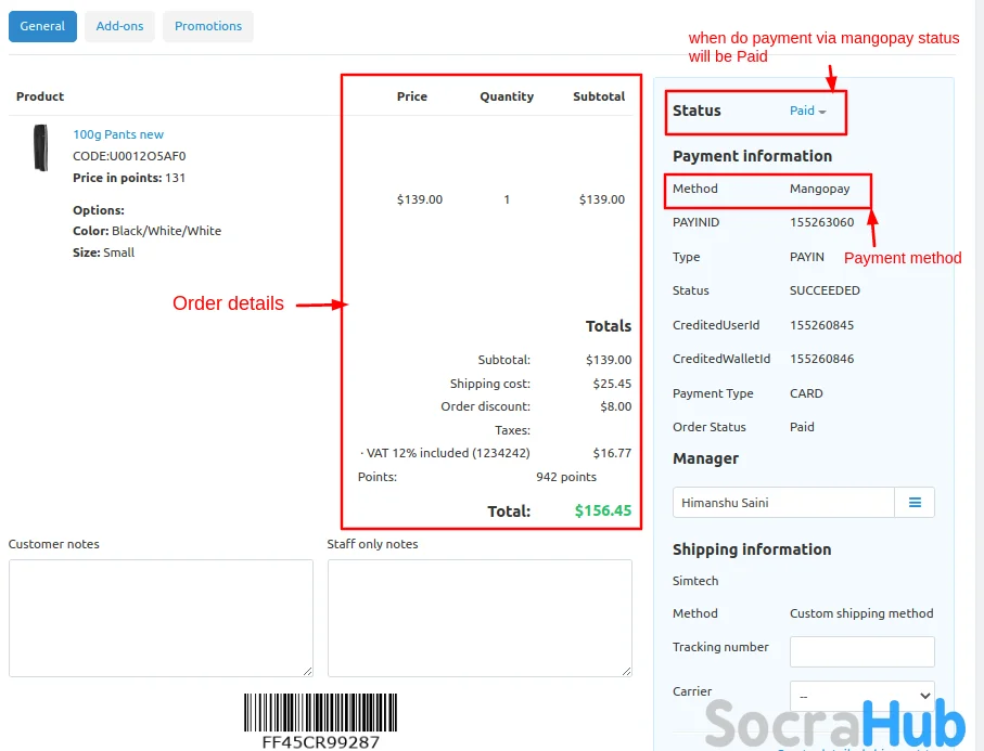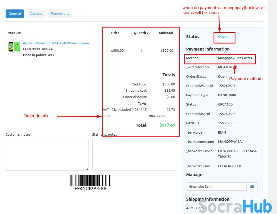 Admin can view the transaction details of the received payment and transfer the amount to the bank from Mangopay.