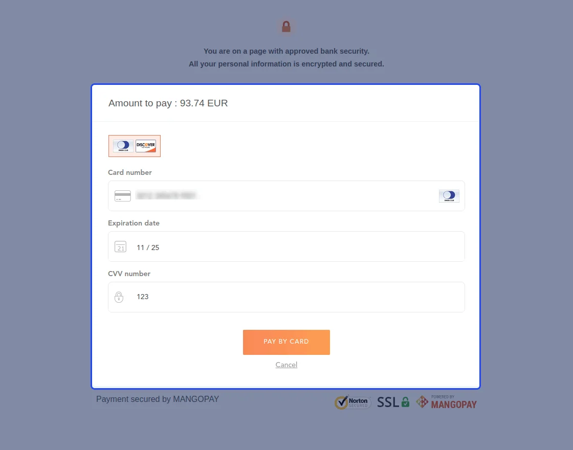 The Mangopay payment method is 3D secured, which will provide secure payment to the customers.