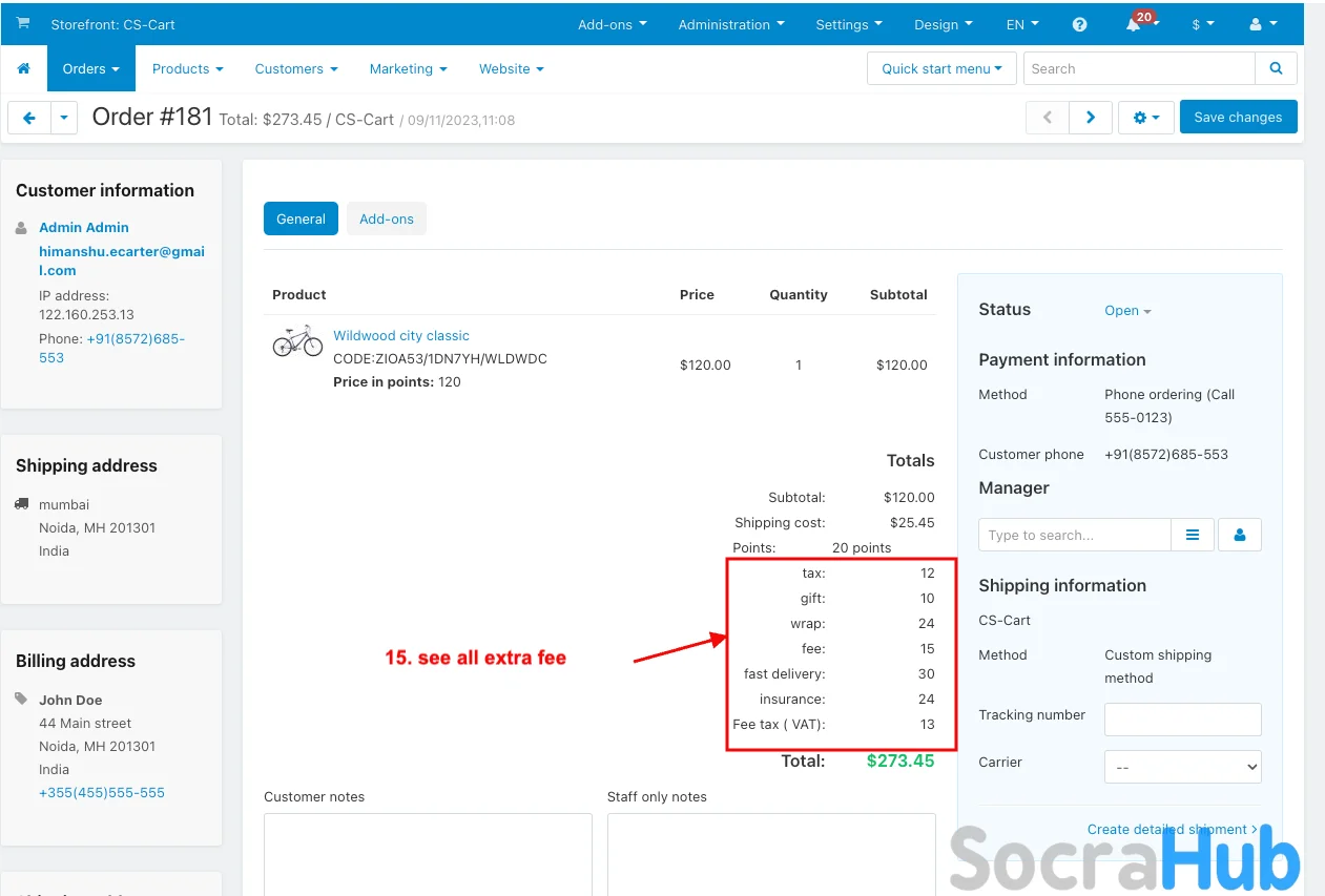 In CS-Cart, the “Order Extra Fee” Add-on simplifies adding extra charges to orders. These Charges can include things like tax, gift, wrap, fast delivery, etc, which add to the total cost of the order. This addon makes it easy to customize and include these extra fees, ensuring a clear and straightforward way to handle additional costs on your e-commerce website. It's a valuable addon for both store owners and customers providing transparency and simplicity in managing orders.
