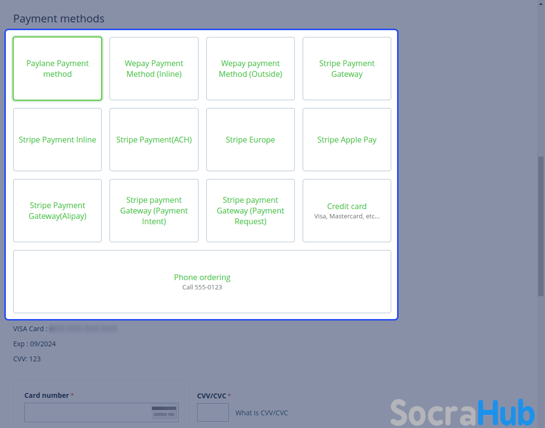 - On the checkout page with all available payment methods, the PayLane method will show.