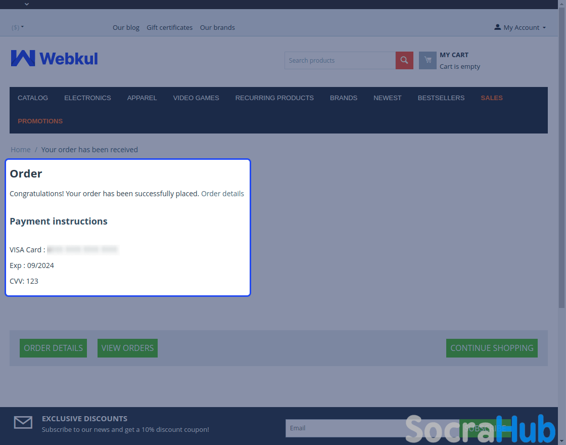 - A success message will trigger to the customer once the order is placed, and users can also check and track CS-Cart order status.