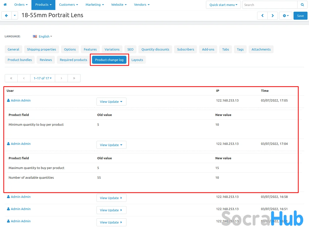 Nulled Cs-cart CS-Cart Product Change Log - ec_products_log 1.0