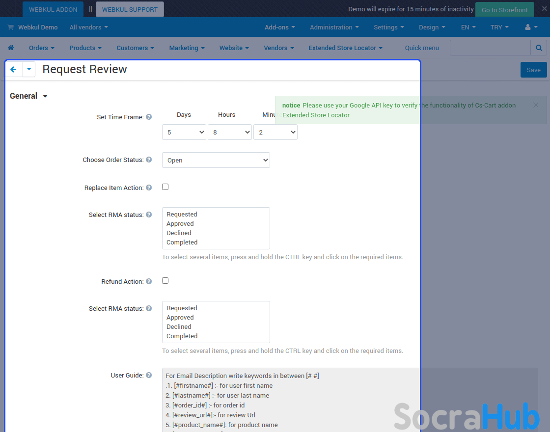To configure the product review request with the CS-Cart store.