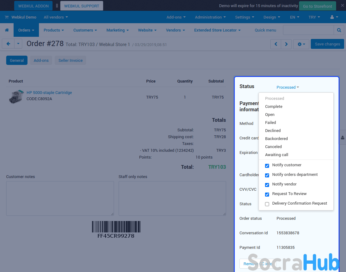 • The extension supports the default CS-Cart RMA system.