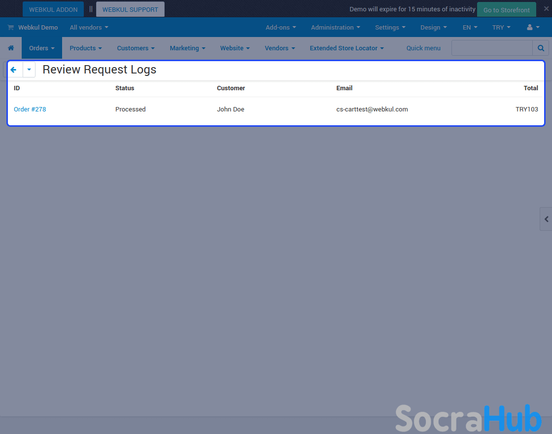 The Admin can check the review request report keep a track of it and resend the mail from the request page. Admin can also share review request mail from the order view page.