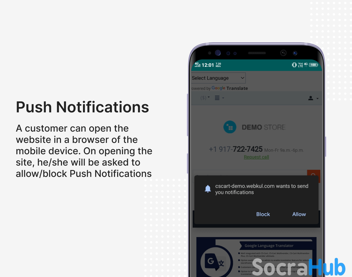 Store administrators can launch Progressive Web Applications with the support of push notifications by simply installing and configuring the add-on.