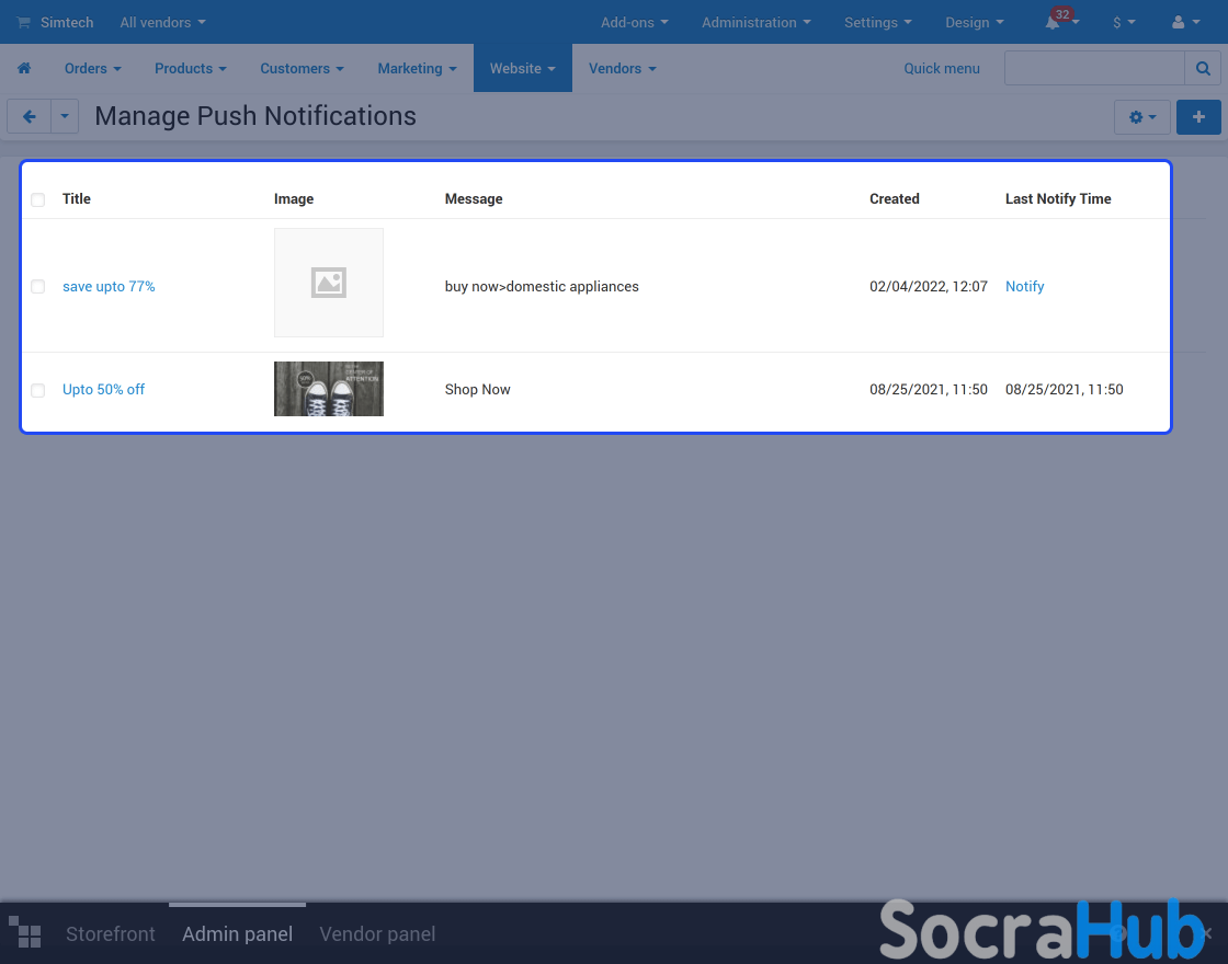 The Admin can easily manage the Push Notifications like add, edit or delete any push notification. The Admin can also send push notifications. For adding the push notification, the Admin can: