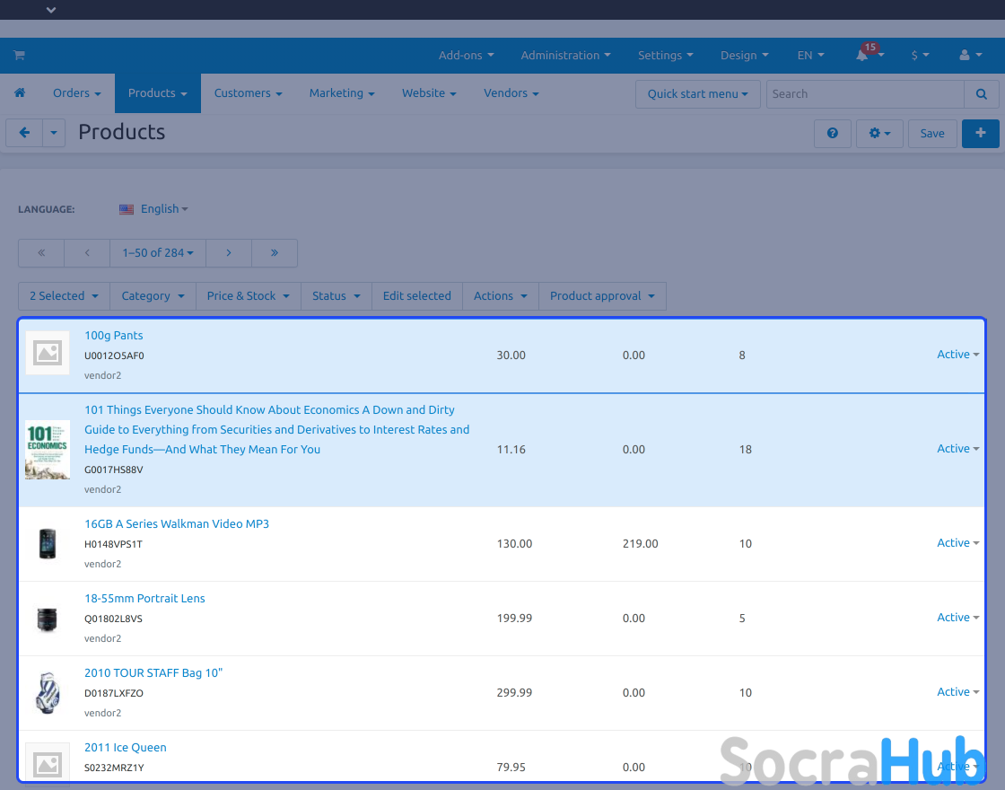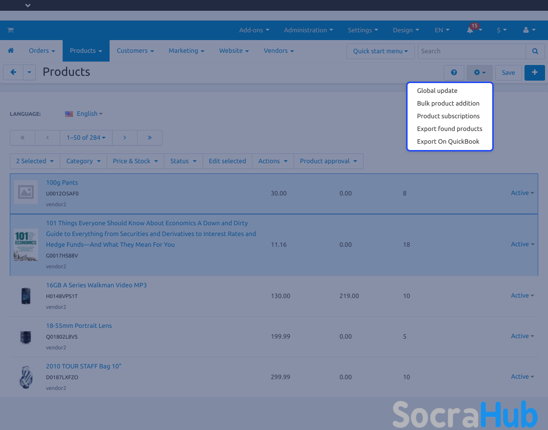 - Similarly, on the CS-Cart panel, open the product section and select products, and export them singly or in bulk mode.