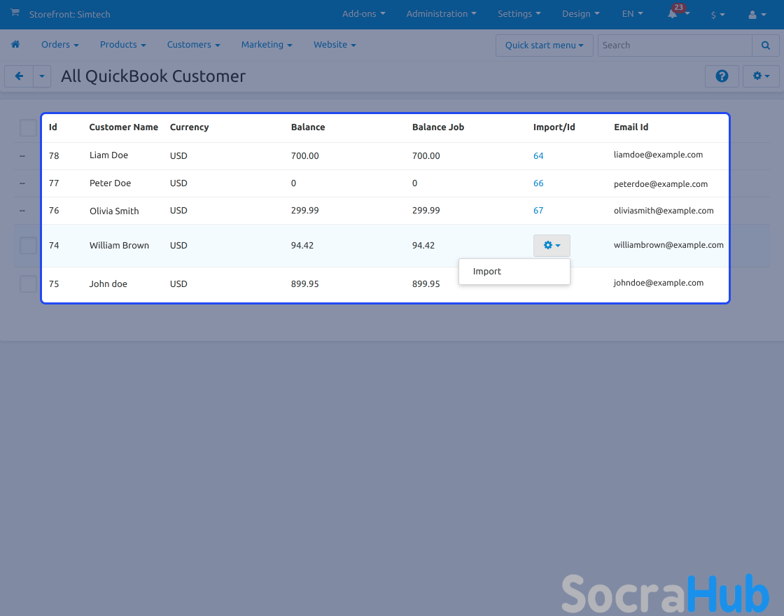 - In the QuickBooks account, the Admin needs to open the customer section, then select the customers and import them to the CS-Cart store.