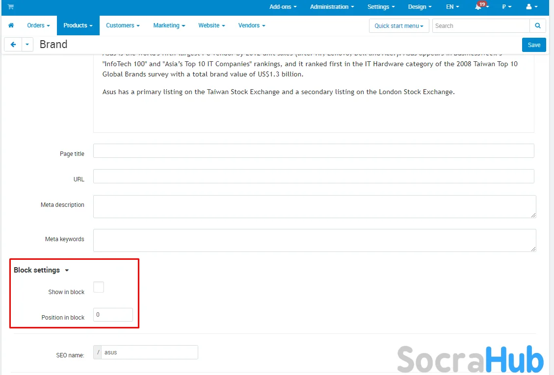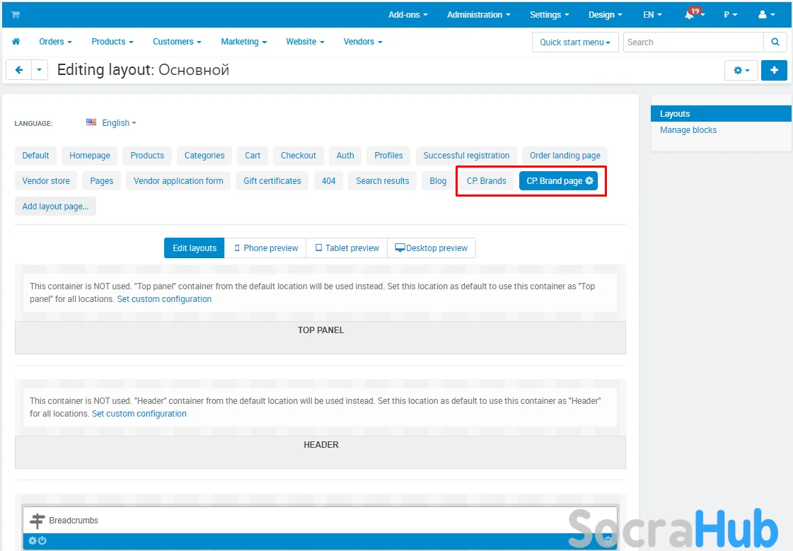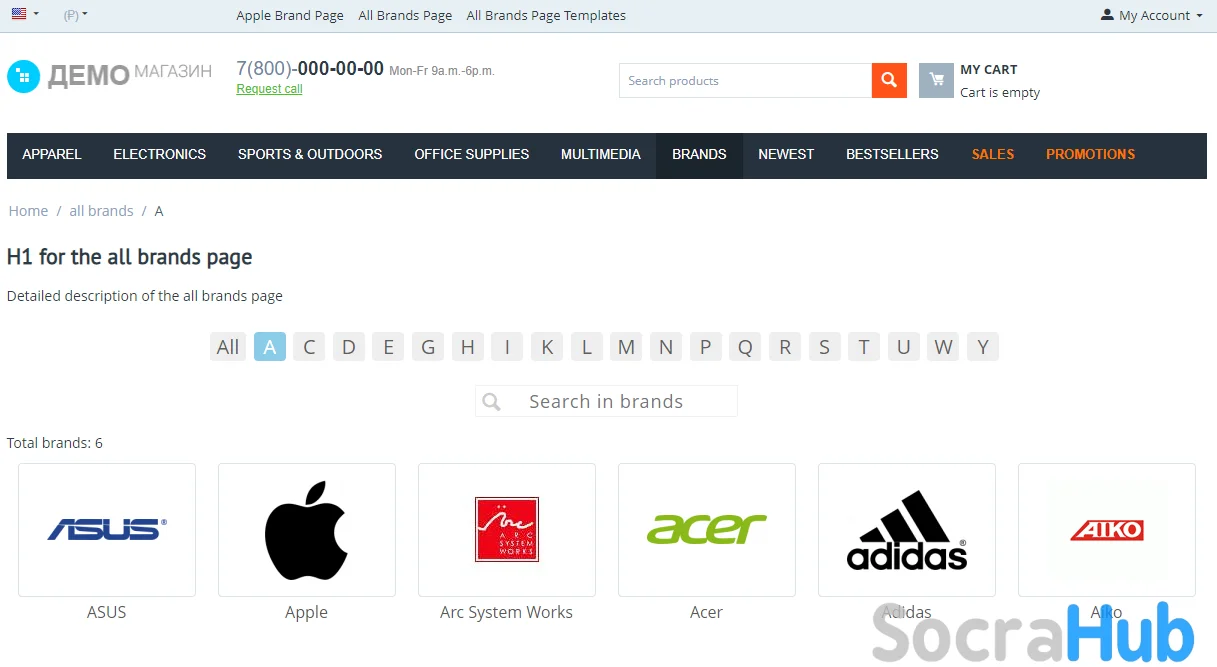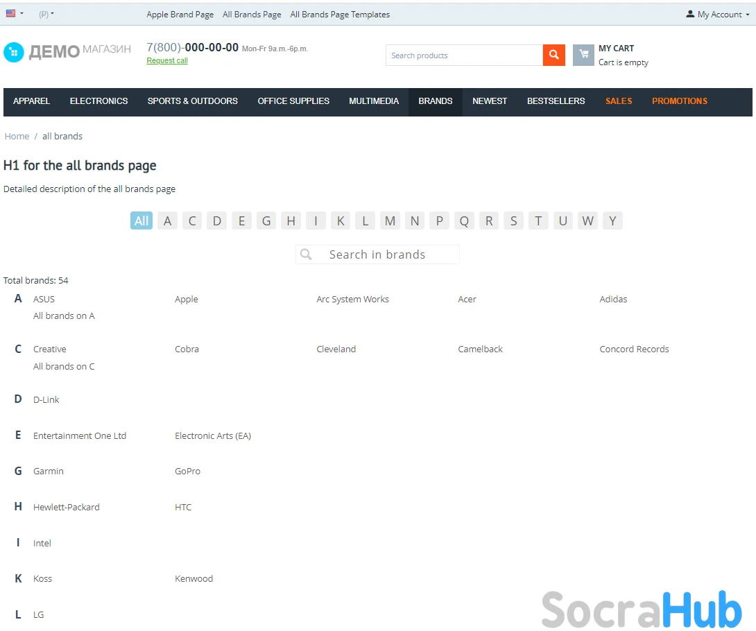 The brand page now has its own separate editable layout, which, with well-filled SEO data, will allow you to use such a page as a landing page.