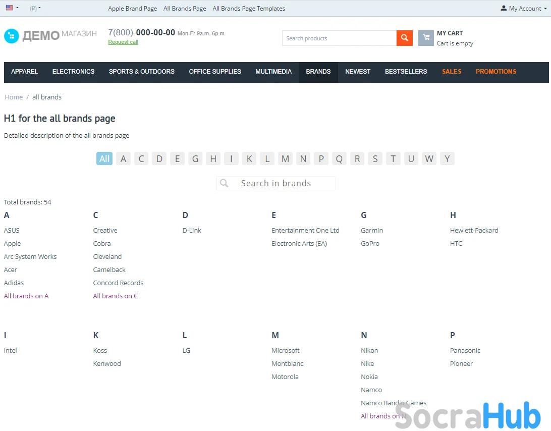 The SEO For Brand Pаges add-on allows you to improve the look and feel of a standard brand page - three view templates, an alphabetical index, a search bar, and full control over brand page SEO.