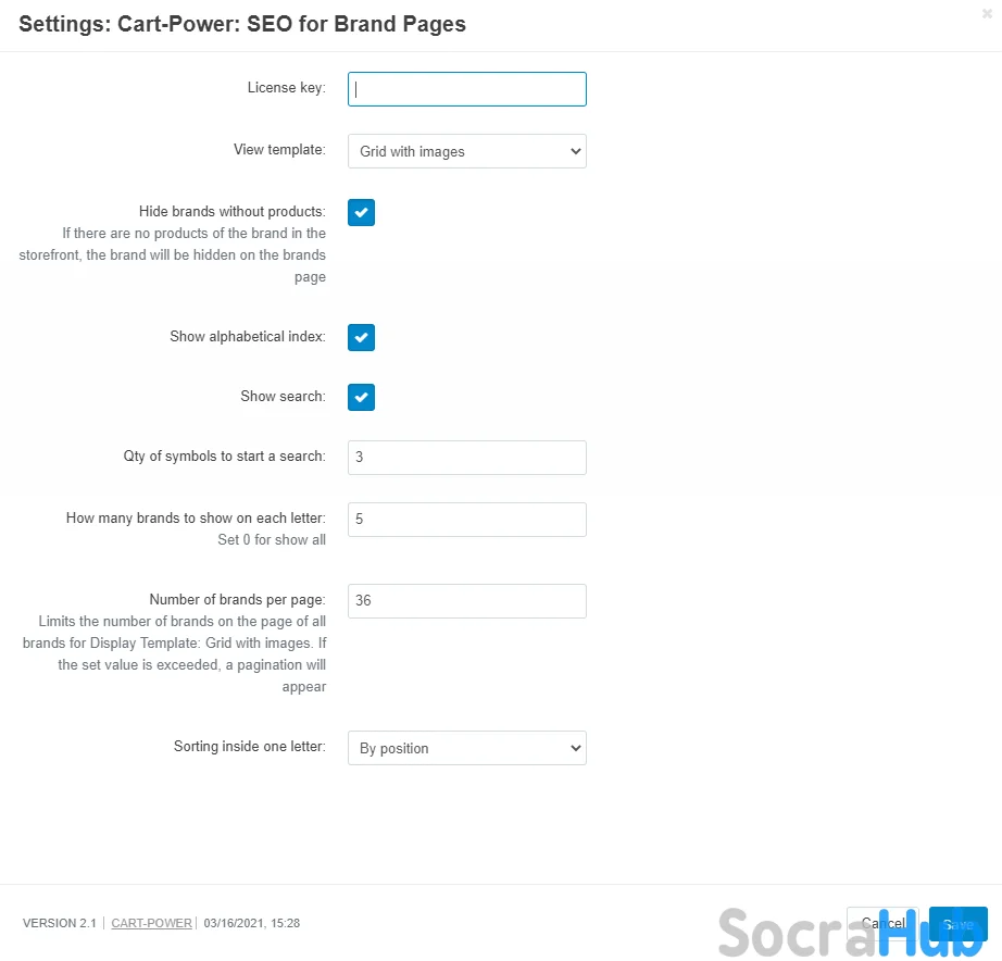 - Ability to configure brand sorting in a letter by alphabet or by position.