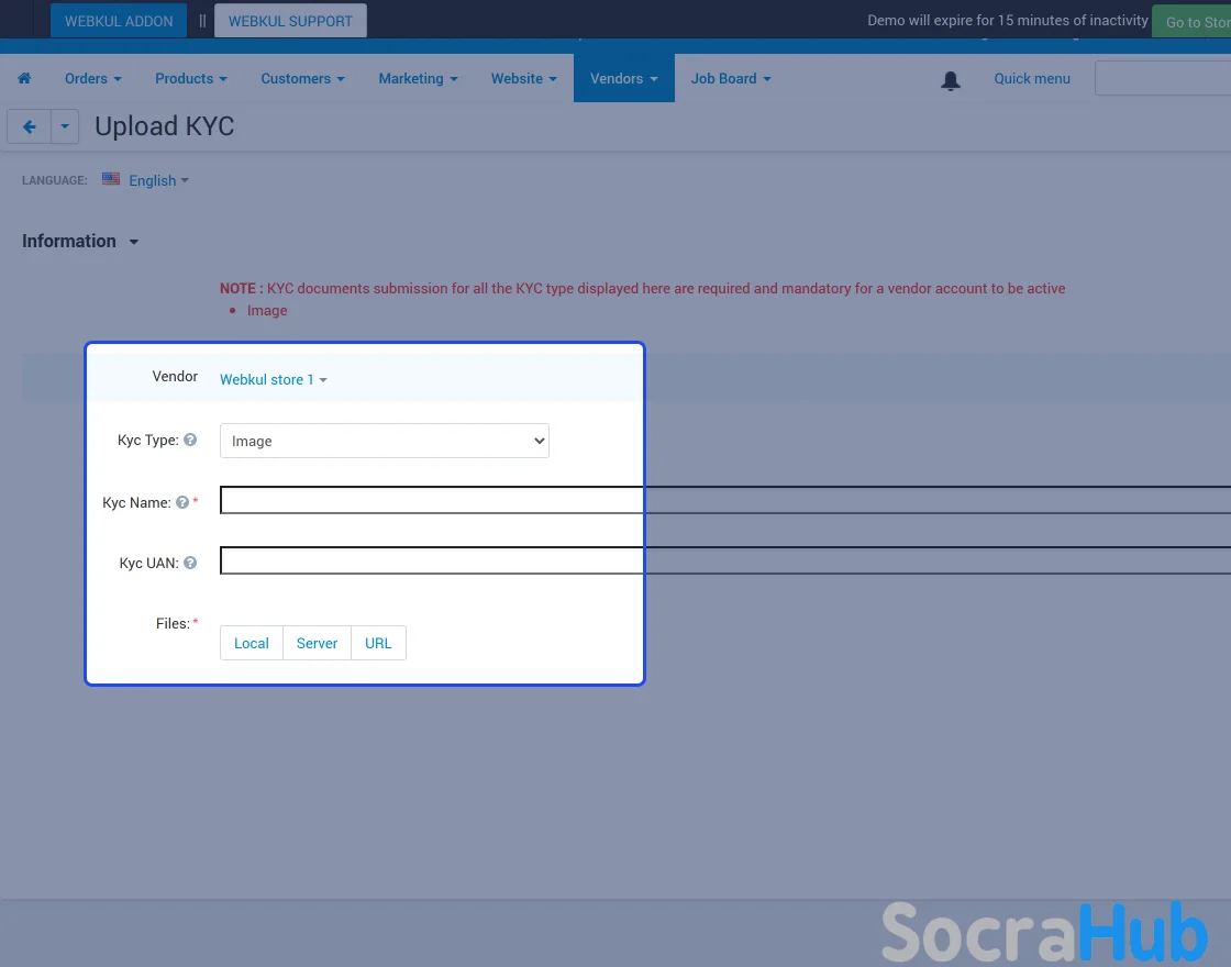 - The vendor needs to upload their KYC.