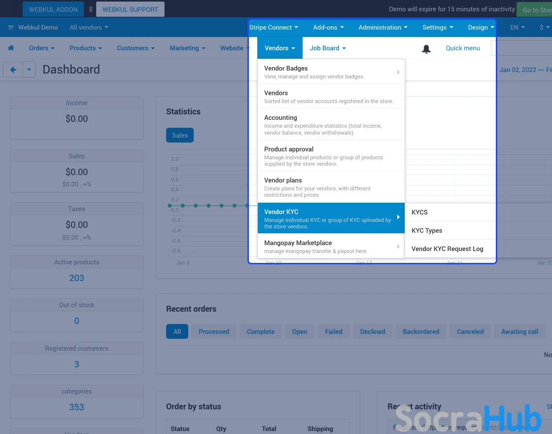 - Functionality to upload KYC is available for both Admin and vendor.