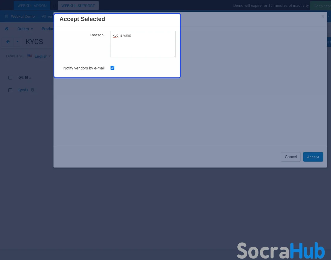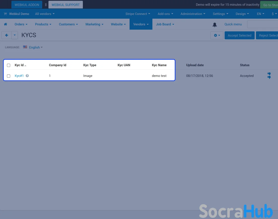 - Functionality to accept or reject the vendor’s uploaded KYC.