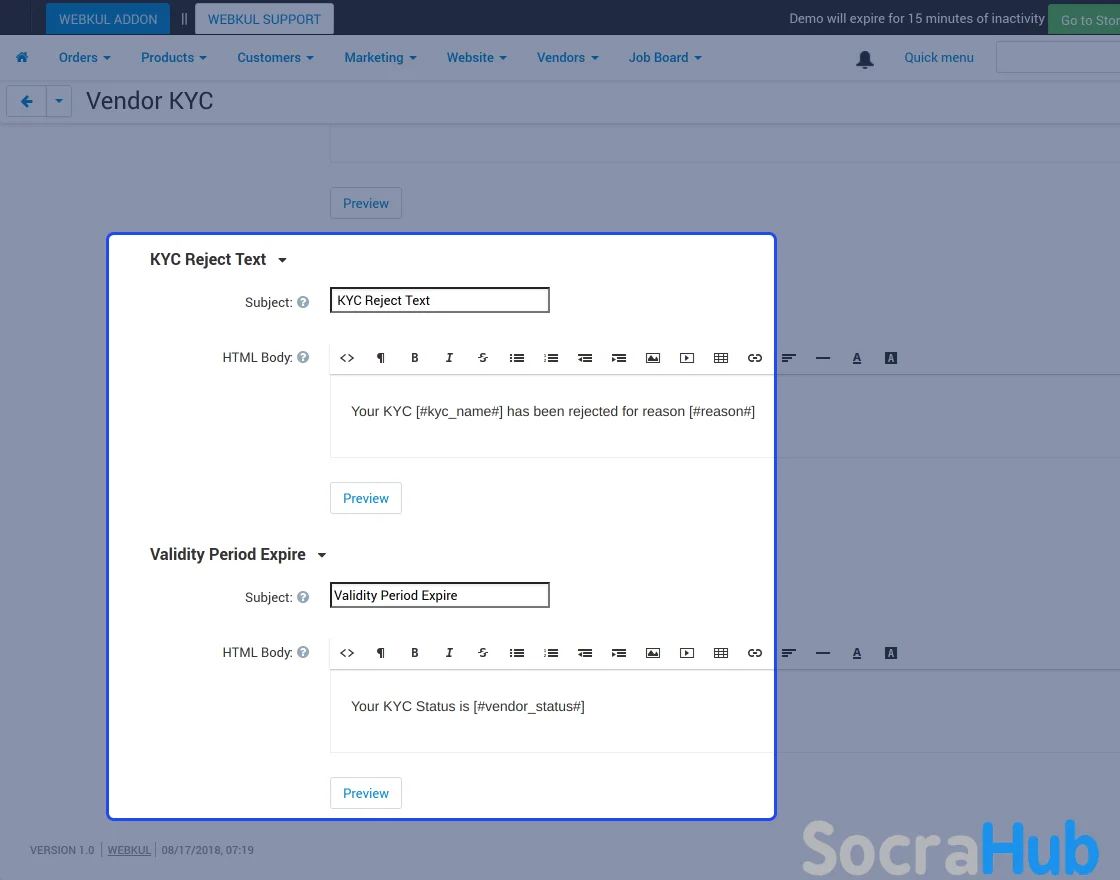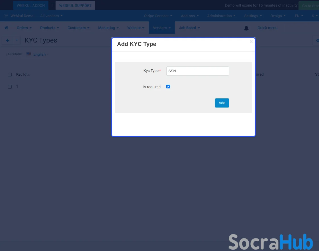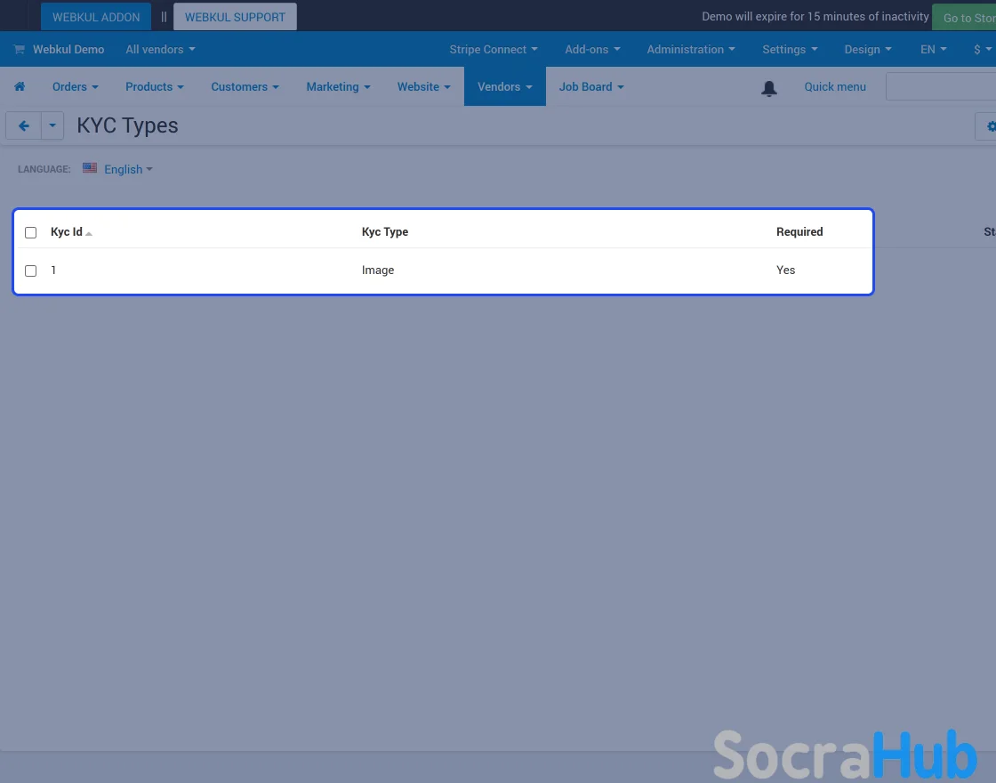 KYC Setup Basic options for Vendors