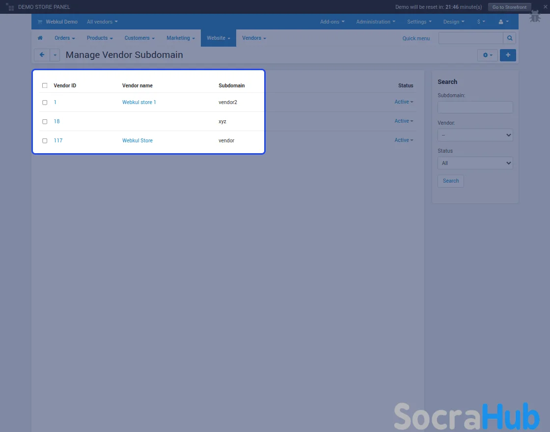 - In this section, the subdomain is created at the vendor panel according to the vendor plan opted by the vendor.