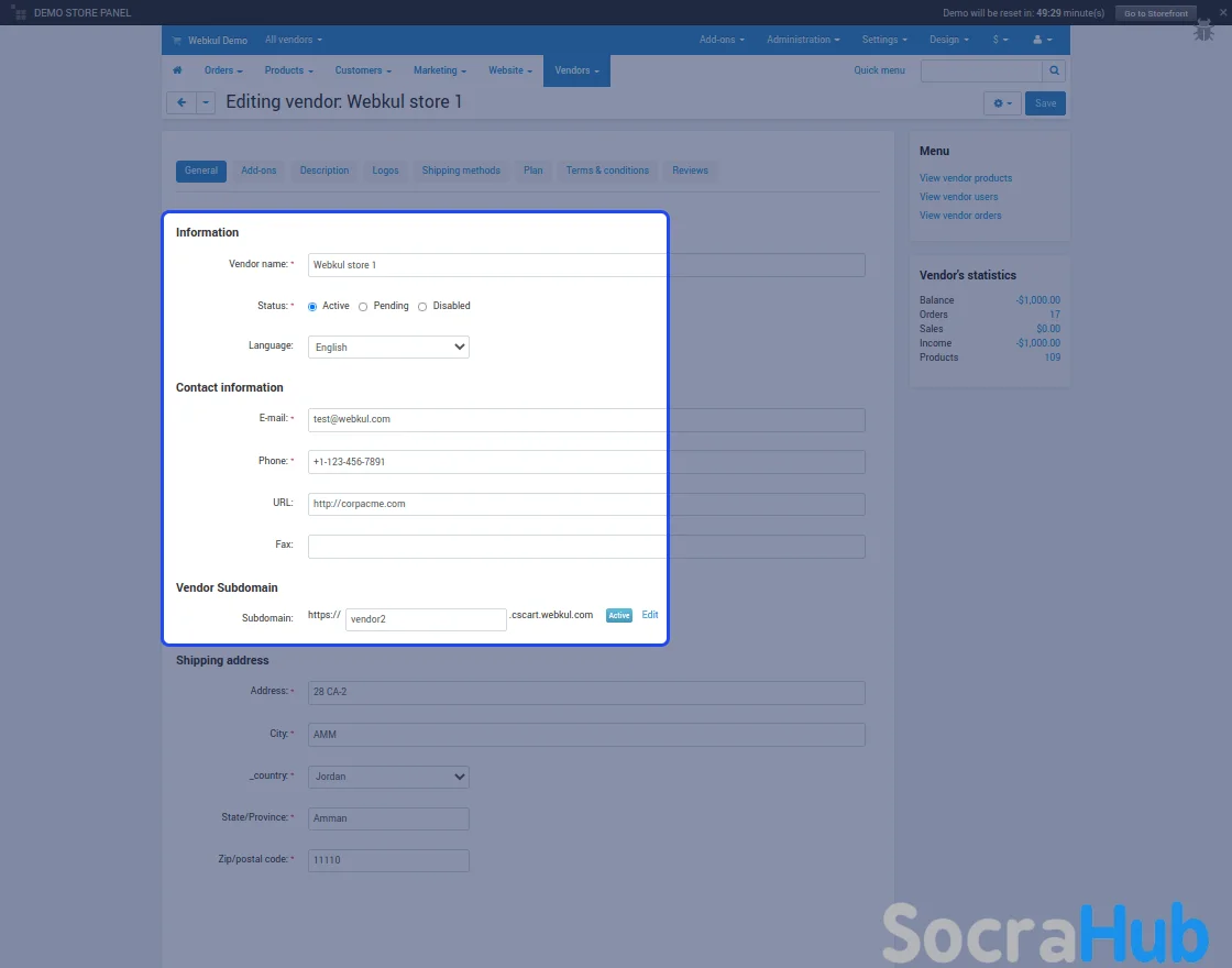 The CS-Cart Vendor Subdomain plugin provides the facility for the vendors to create a separate subdomain for their stores.