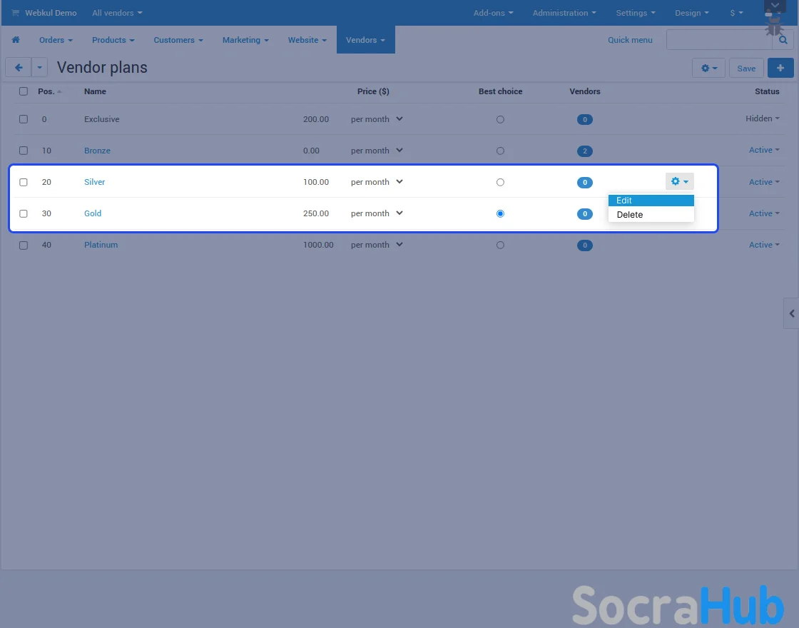 Vendor Plans Section