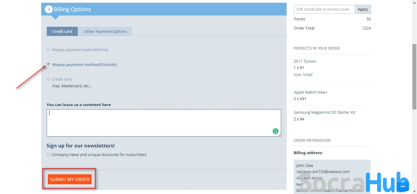• Admin can configure WePay in CS-Cart Store for both inline and outside payments.