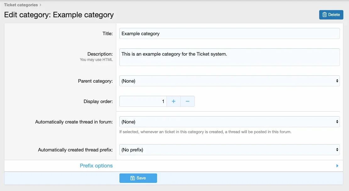 - Allow users to create new tickets in configurable categories. Custom permissions allow you greater control over who can see a ticket and who can respond to them.