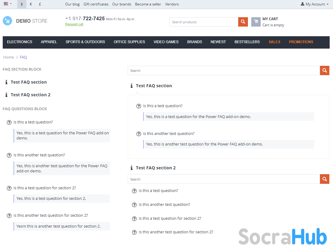 The Power FAQ allows you to create SEO-friendly FAQs with easy navigation and search by them on the product page, a block on any store page or a separate store FAQ page. You get more trust, increase the likelihood of a sale and save time of the store administrators.