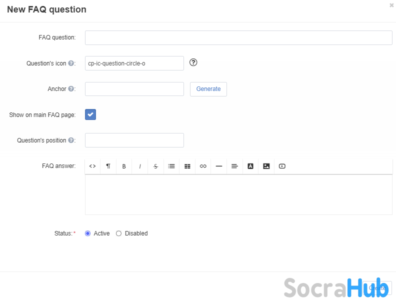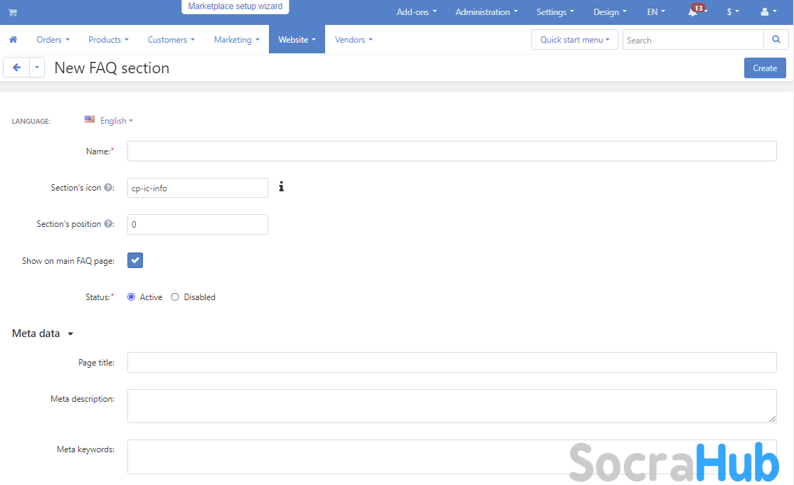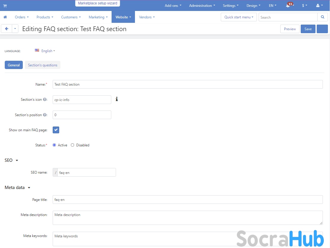 - Editable SEO-data (page title, meta description, meta keywords) for FAQ section pages and common FAQ page of the store.