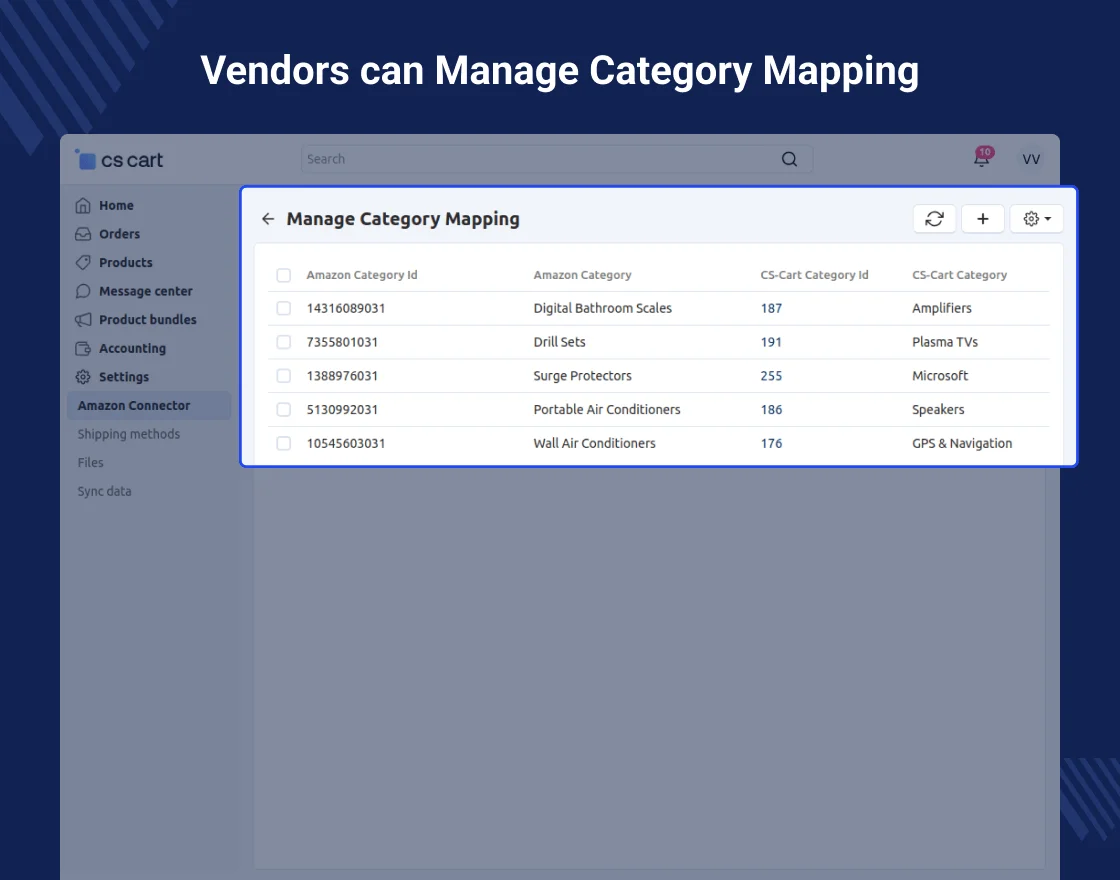 Amazon orders are imported into CS-Cart, so sellers can process and ship without switching between systems. It saves time, reduces mistakes, and helps sellers reach more customers by selling on Amazon while using their CS-Cart system.