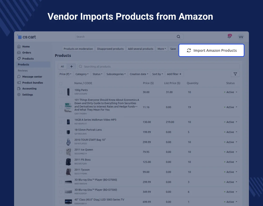 - Manage Amazon products and orders from CS-Cart.